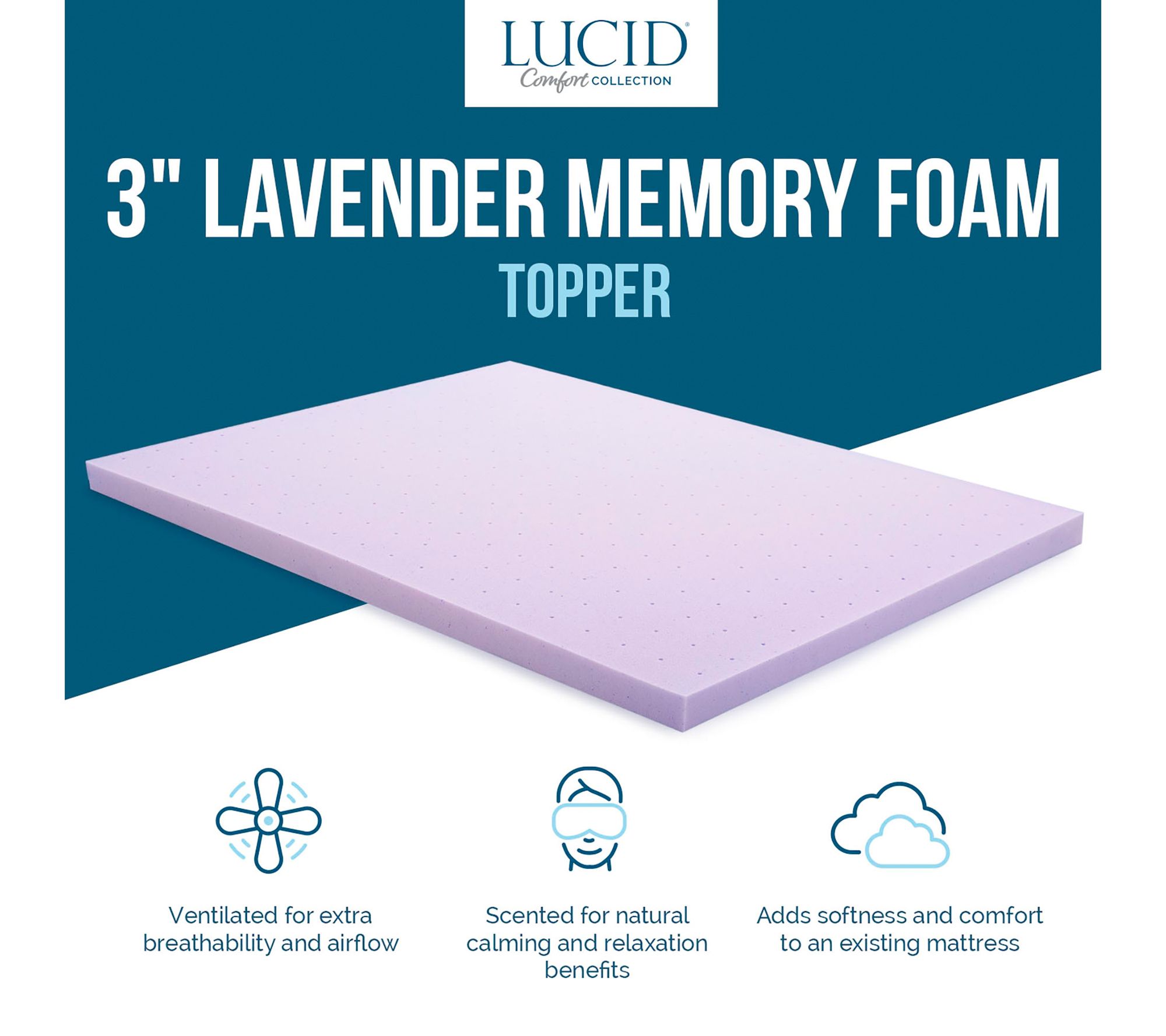 Lucid Comfort Collection 3" Lavender Foam Topper - Queen