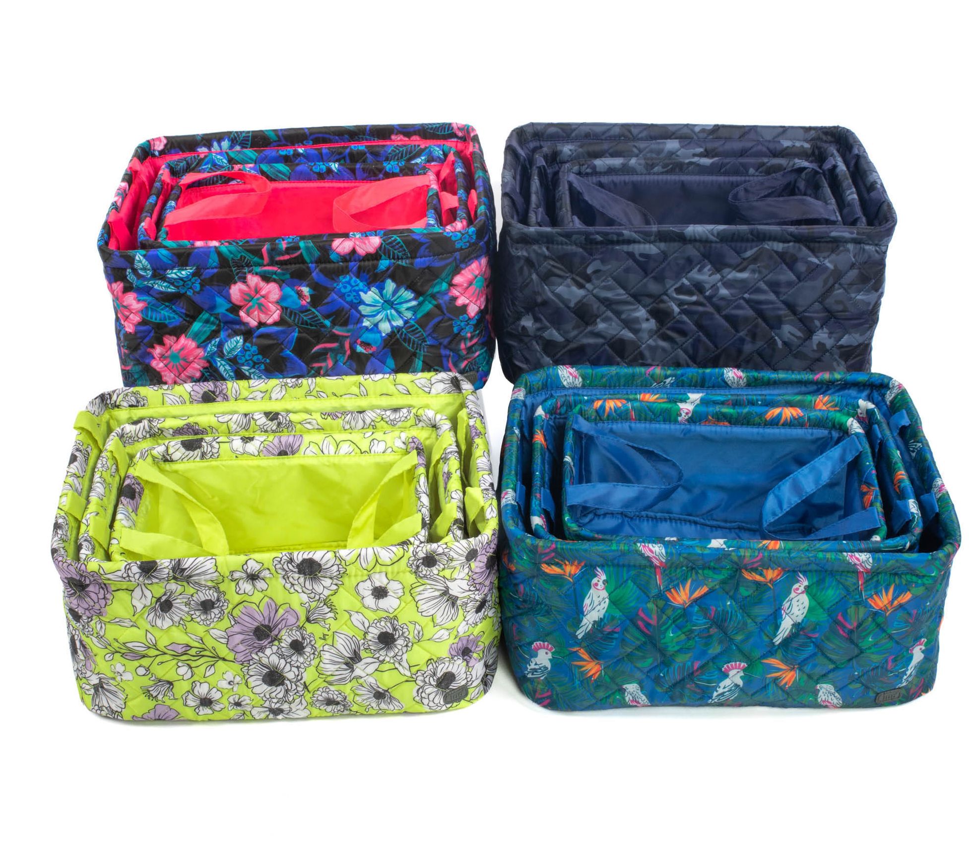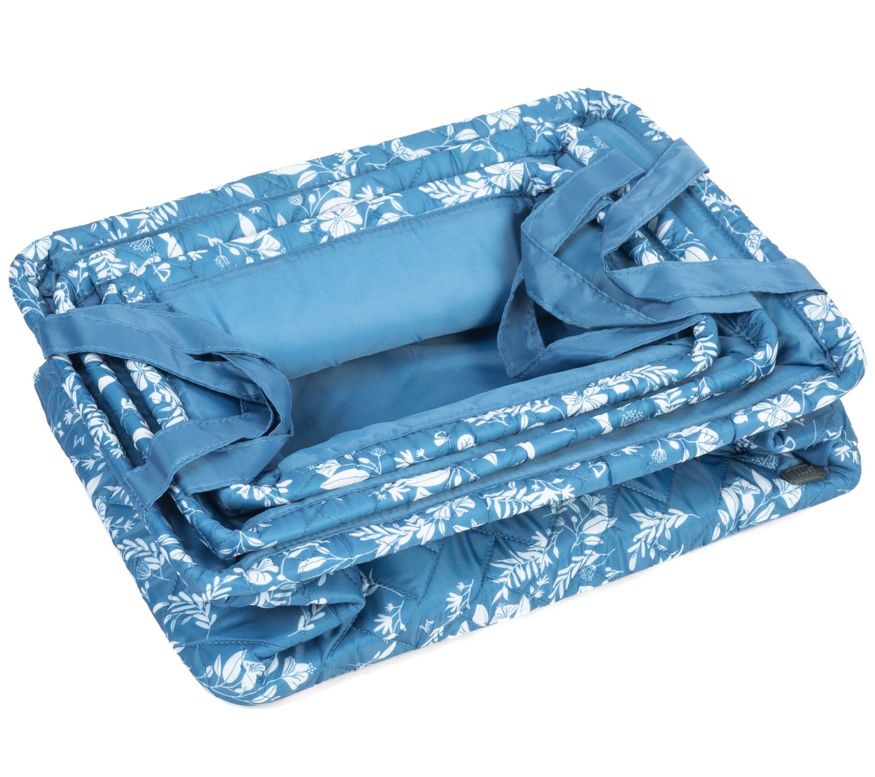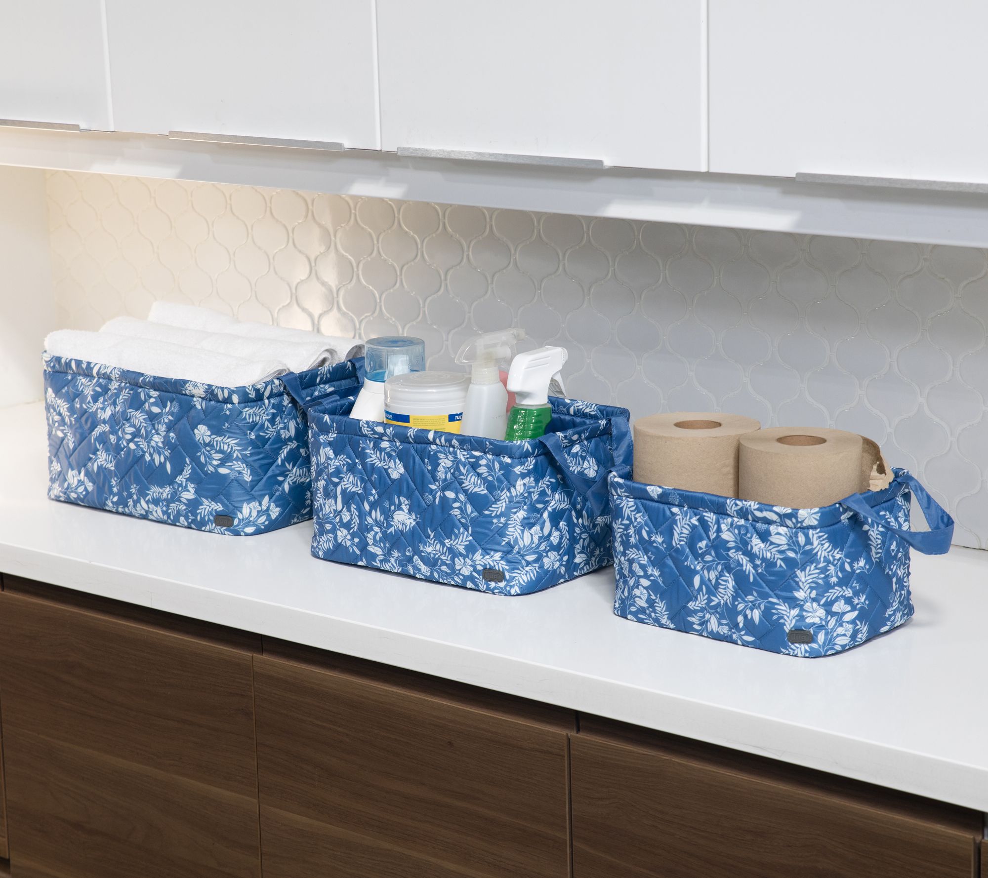Organize your home with this set of three collapsible storage bins featuring fabric handles for easy carrying and a reversible quilted design. From Lug.