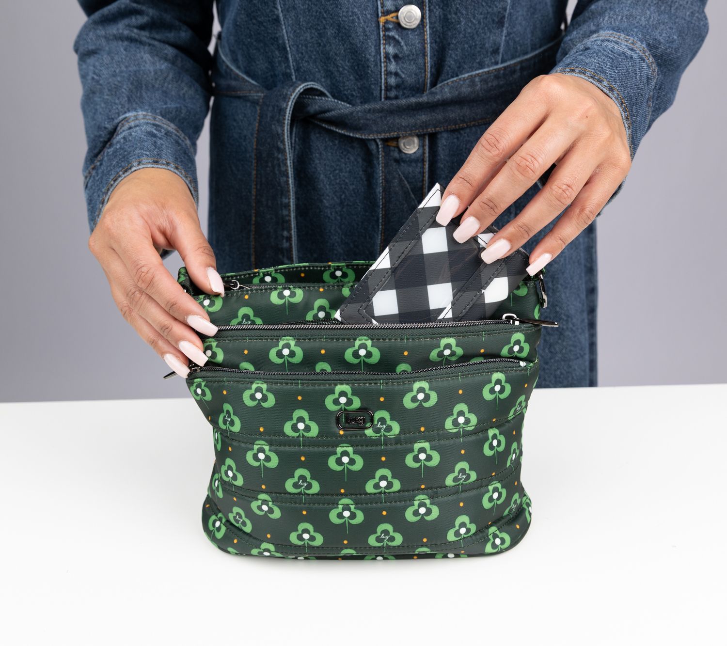 Heading out for a day of errands or adventures, this classic crossbody adapts to your plans with plenty of thoughtfully placed pockets and a soft-lined spot for your phone or sunglasses. Keep your essentials organized in zip compartments and enjoy the versatility of an adjustable strap that can be worn your way. From Lug.