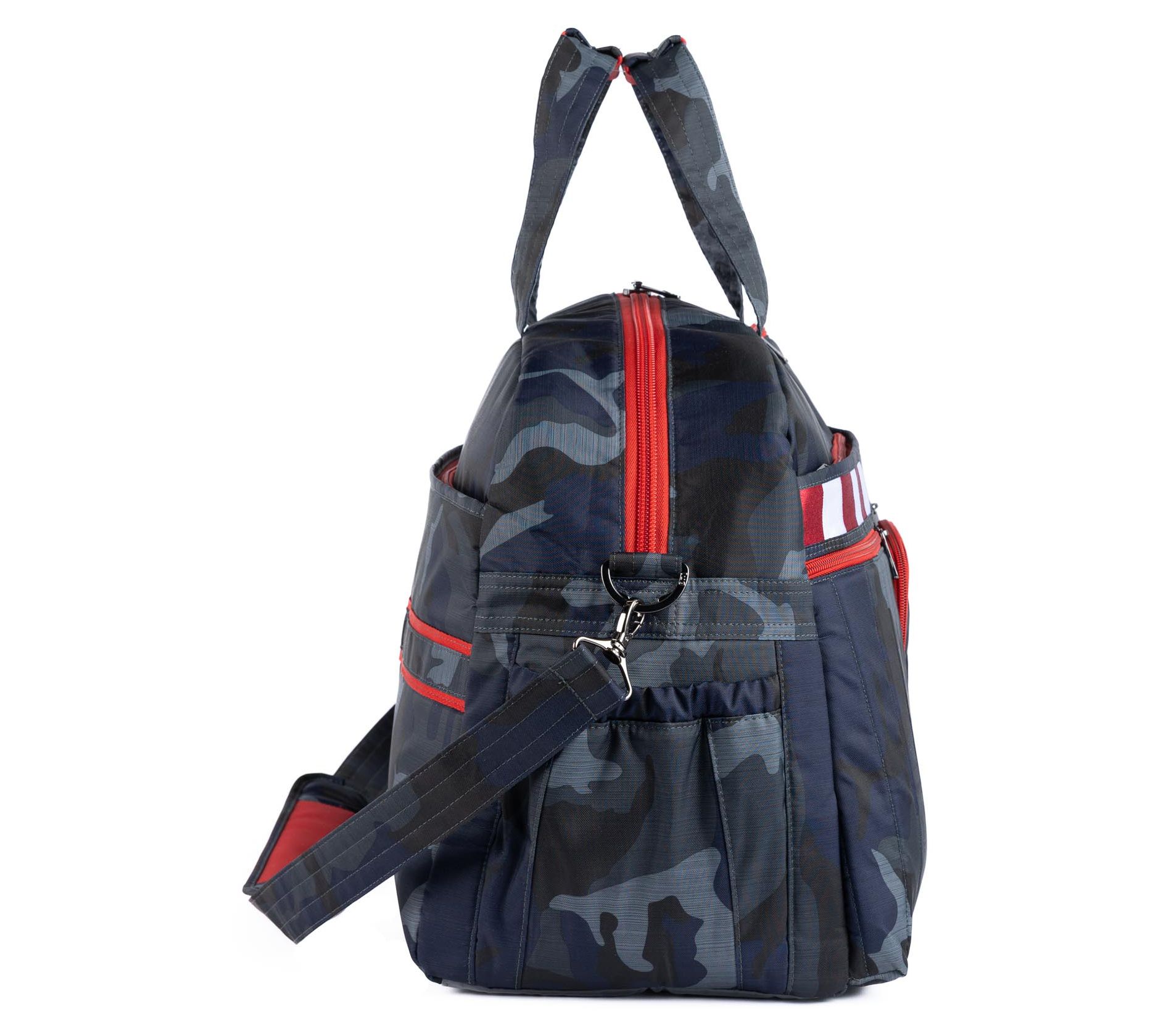 Ideal for travel, this duffel has a place for everything and keeps everything in its place! Multiple pockets inside and out keep your belongings perfectly organized, while a top handle and adjustable/removable strap let you carry it how you like. Plus, a trolley sleeve makes it a cinch to put on your suitcase as you maneuver the airport terminal or your vacation destination. From Lug.