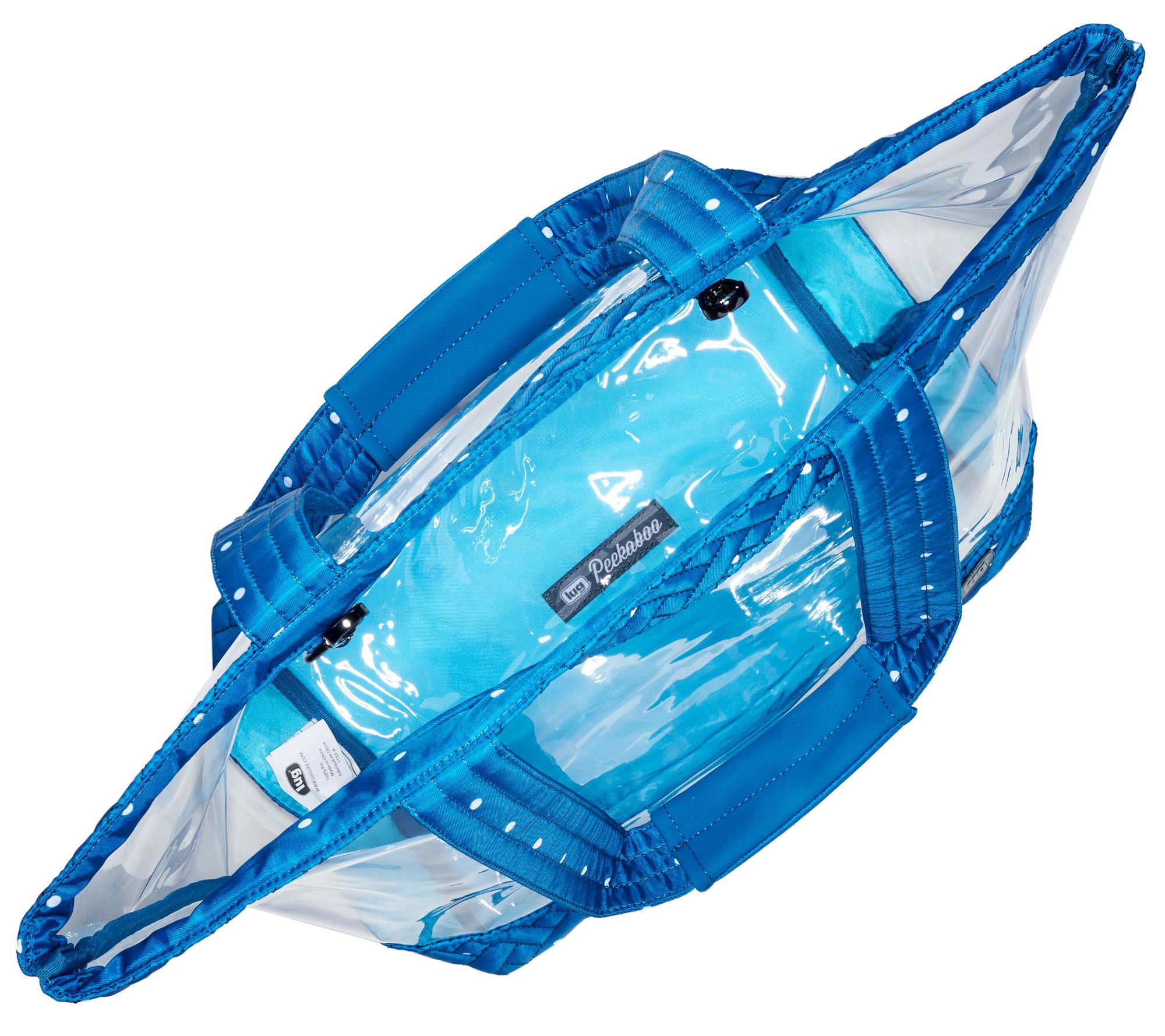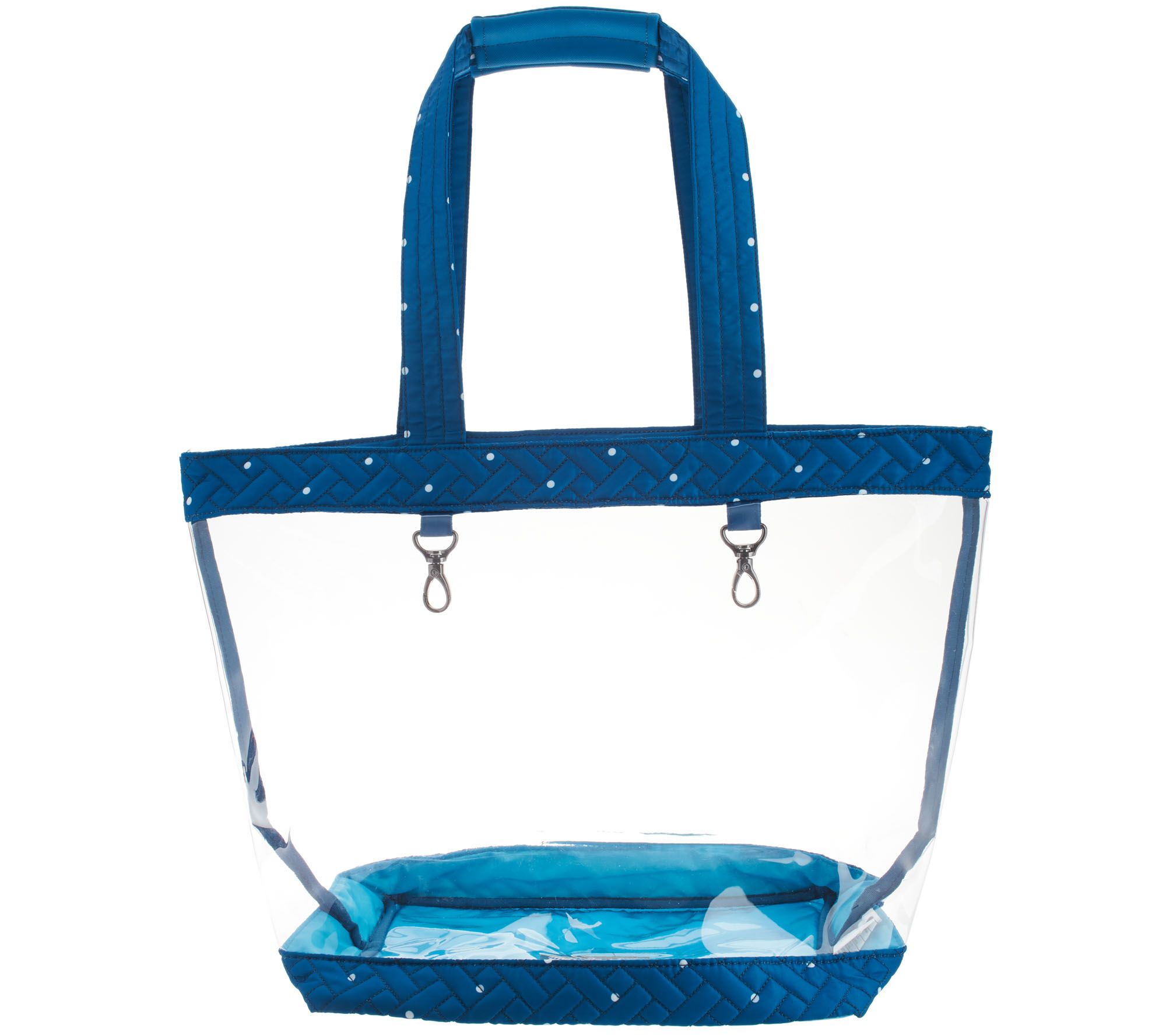 • Tote: clear, double handles, magnetic snap closure