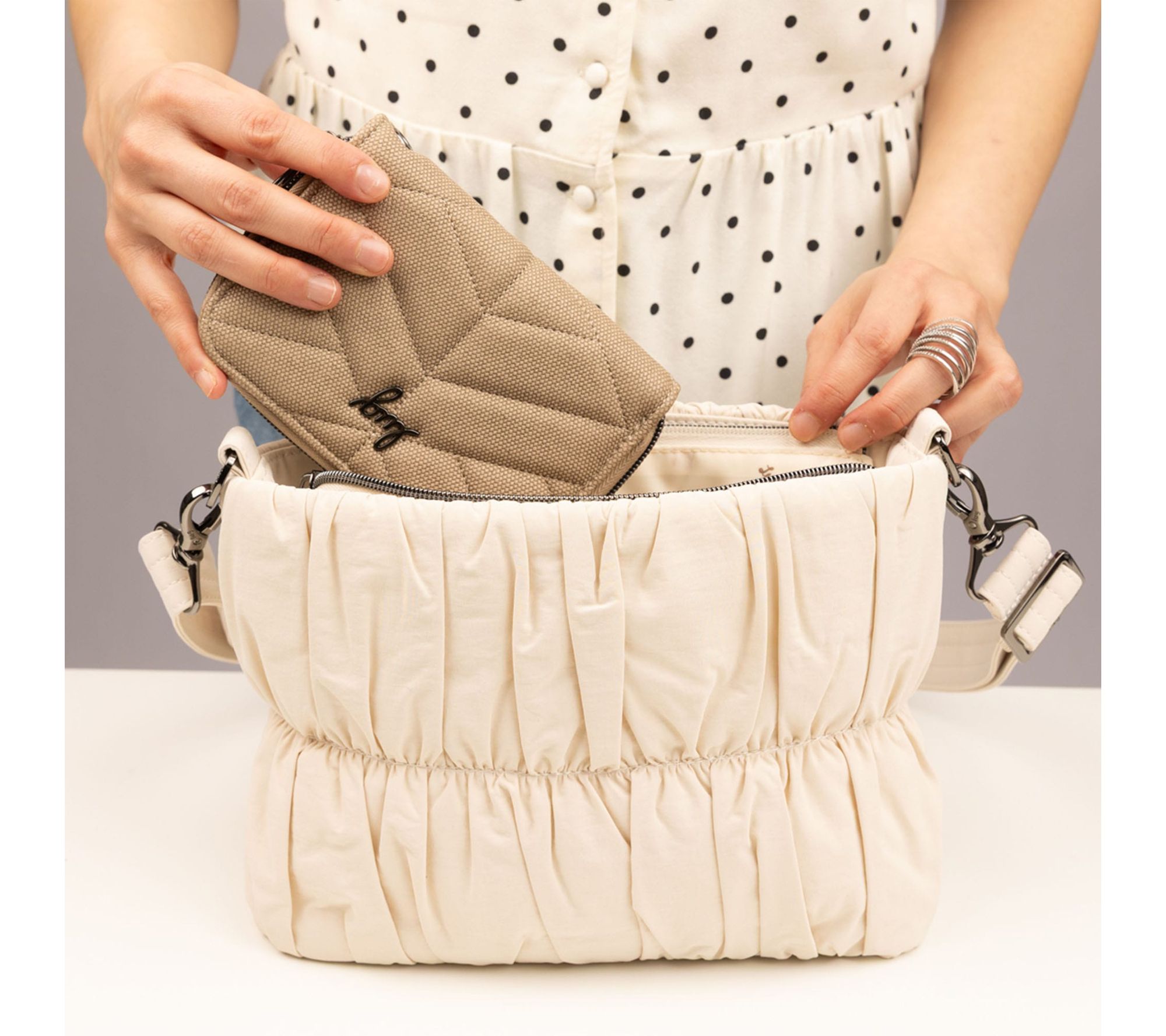 Effortlessly keep your essentials close with this ruched crossbody, featuring a versatile adjustable strap and plenty of thoughtfully placed pockets. Whether you're dashing through your daily errands or headed out for happy hour, organization and comfort go wherever you do. From Lug.