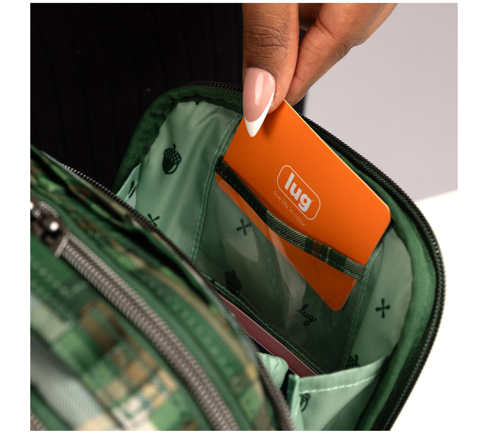Errands, adventures, or afternoons on the go -- this convertible crossbody provides effortless organization with dedicated pockets for cards, devices, and essentials, plus space to stash keys and pens. Choose the top handle for a quick grab or adjust the strap for hands-free movement, while the accordion foldout keeps everything at your fingertips. From Lug.