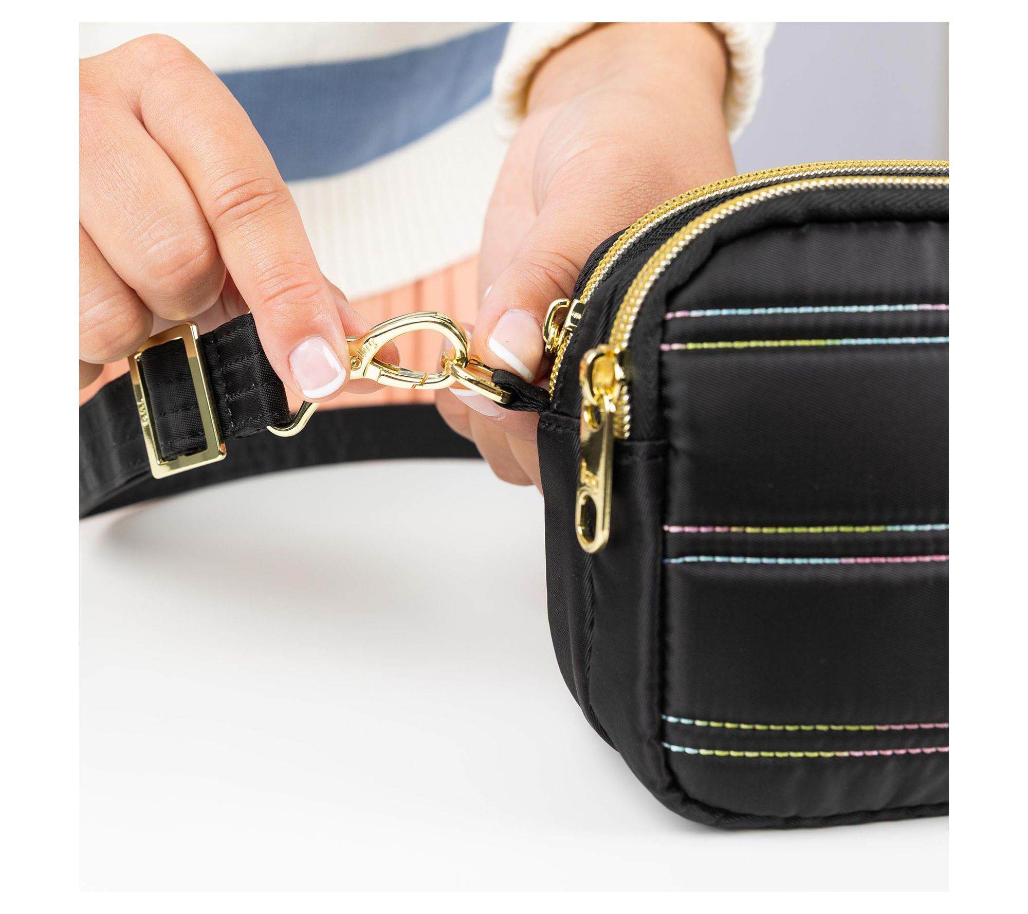 When your day calls for hands-free versatility, this convertible crossbody bag adapts with ease -- whether worn across your body or fastened at your waist with rear belt loops. Multiple compartments, handy card slots, and a bill slot help sort your must-haves while a playful charm bar adds a stylish accent to every outfit. From Lug.