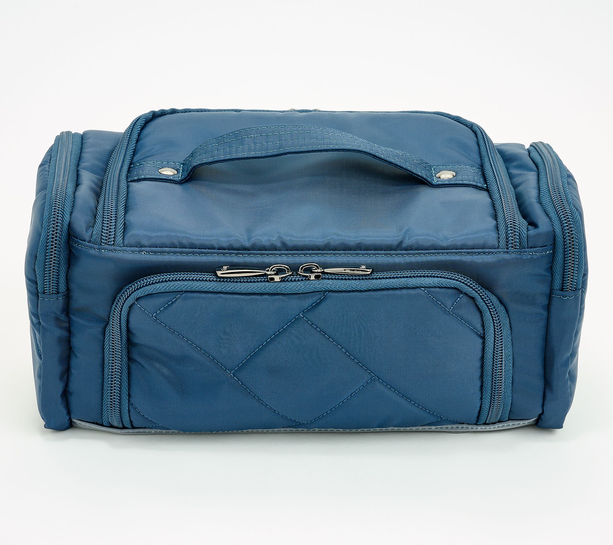 Keep your makeup and more stylishly stored in this colorful cosmetic case, packed with plenty of zip pockets to place all your personal items. From Lug.