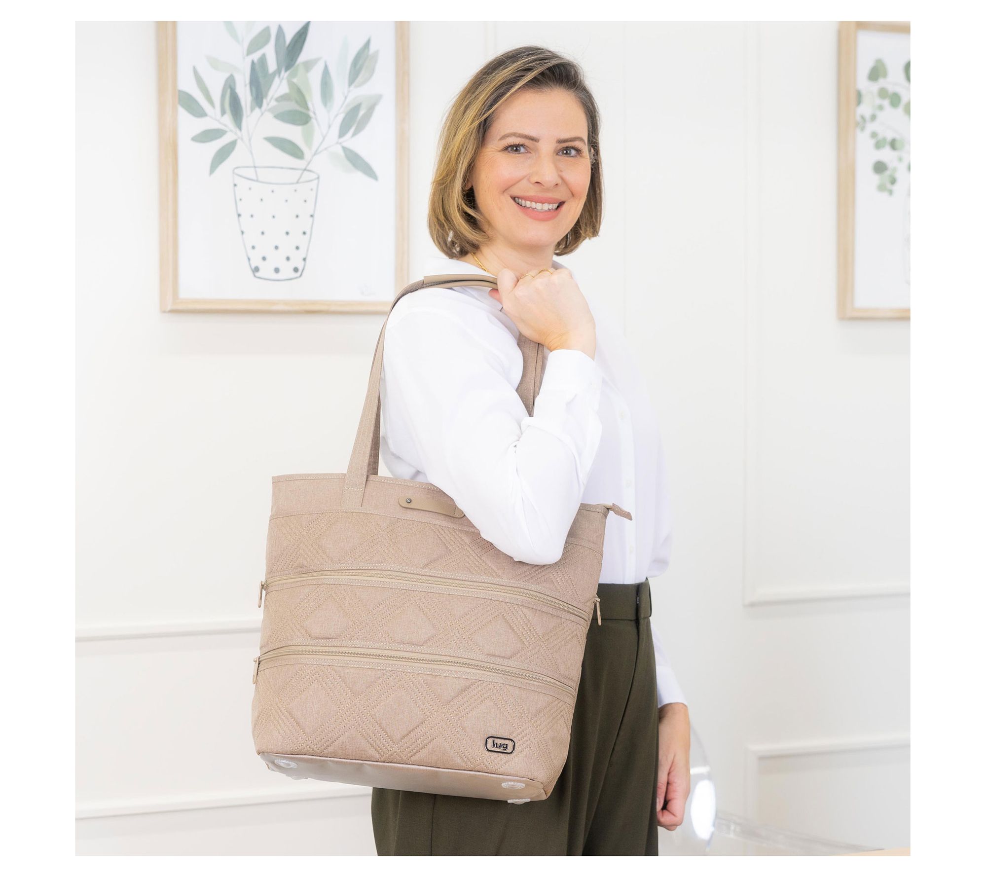 Whether you're heading to the office or traveling for the weekend, this quilted east/west tote combines practicality with style. With multiple compartments (and even a trolley sleeve for when you're travelling!), it keeps you organized and ready to take on the day. From Lug.