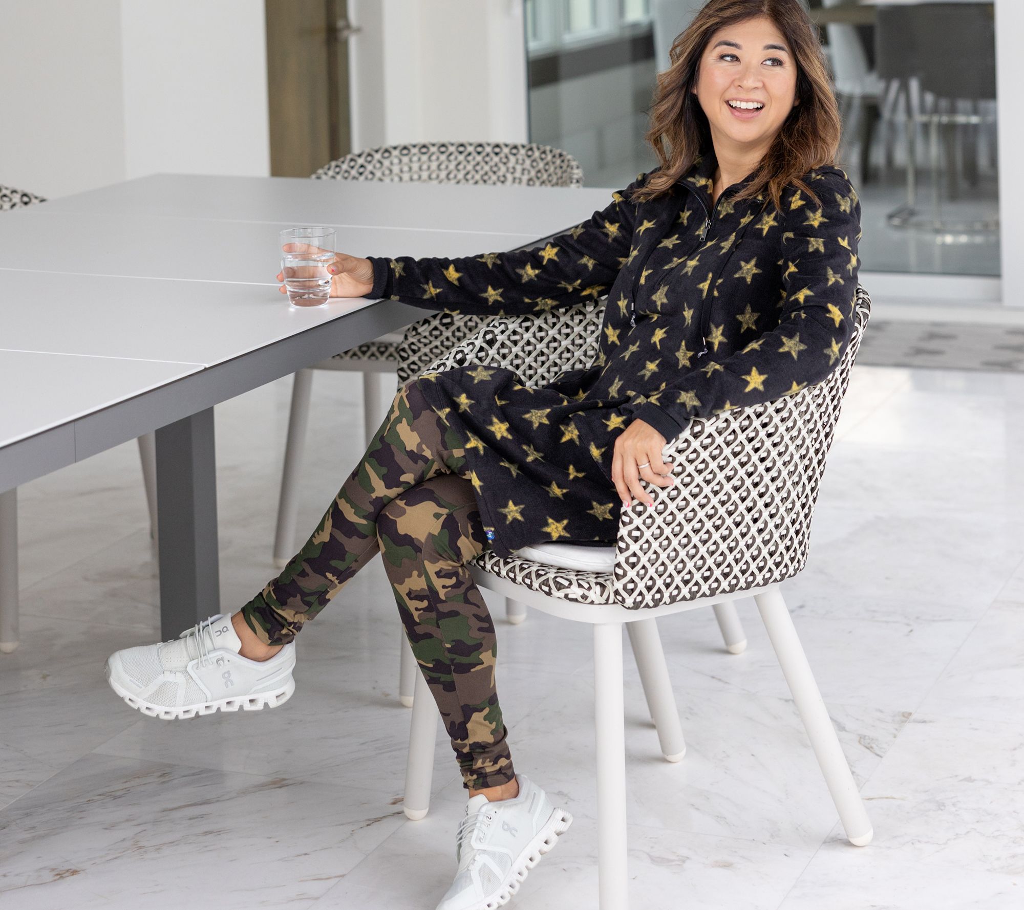 Take the day off and relax in this snuggly, stretch fleece tunic. It's soft and cozy like a blanket, but stylish enough to wear when an impromptu guest (or neighbor) comes calling. Need a place to rest your readers? This top features an eyeglass holder. Score! From Lug.