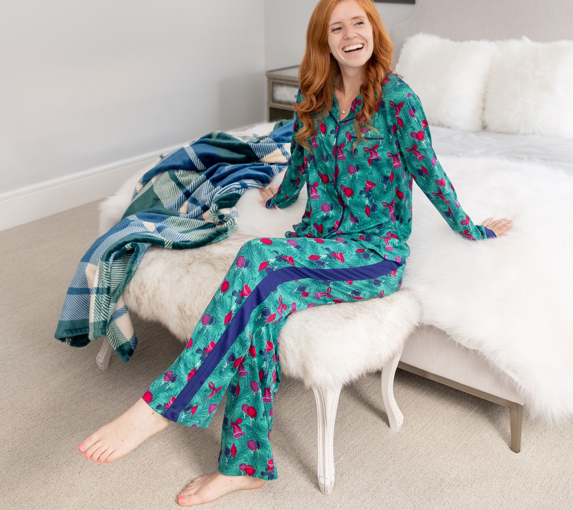 The dream team. This top and pants PJ set is exactly what you need to unwind after a long day -- and maybe stay in all weekend long. Playful patterns bring joy to your world while the soft stretch fabric keeps you cozy from sunrise to sunset. Your downtime deserves it. From Lug.