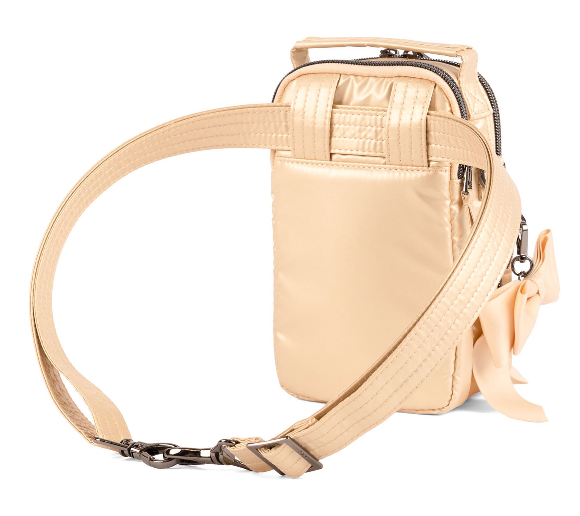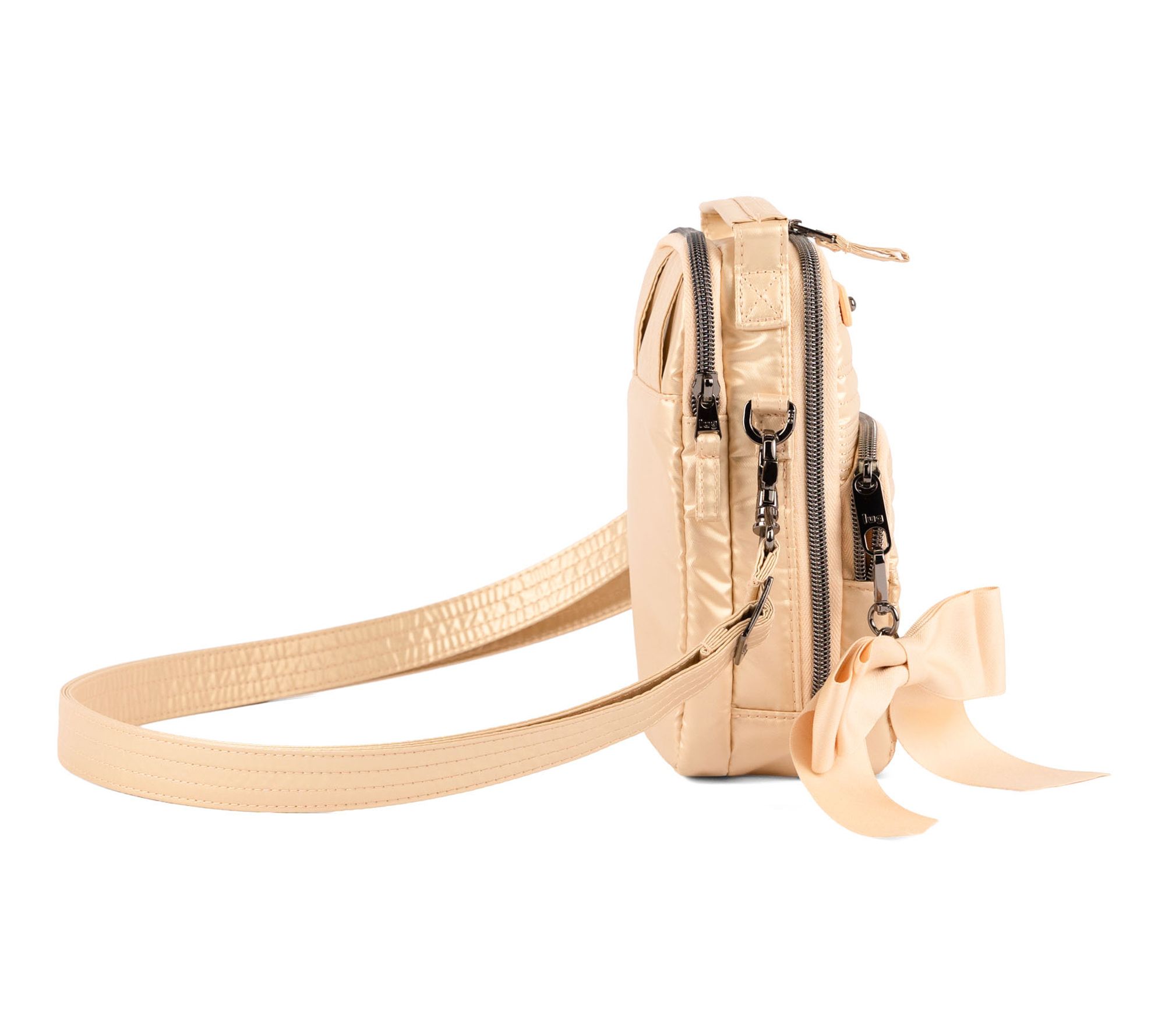 Errands, adventures, or afternoons on the go -- this convertible crossbody is all dressed up and ready to go! Embellished with a pretty bow zipper pull, the Skeeter Mini Bridge provides effortless organization with dedicated pockets for cards, devices, and essentials, plus a soft-lined pocket for glasses or sunnies. With three ways to carry -- crossbody, belt bag, or top handle -- you choose the option that best suits your day. From Lug.