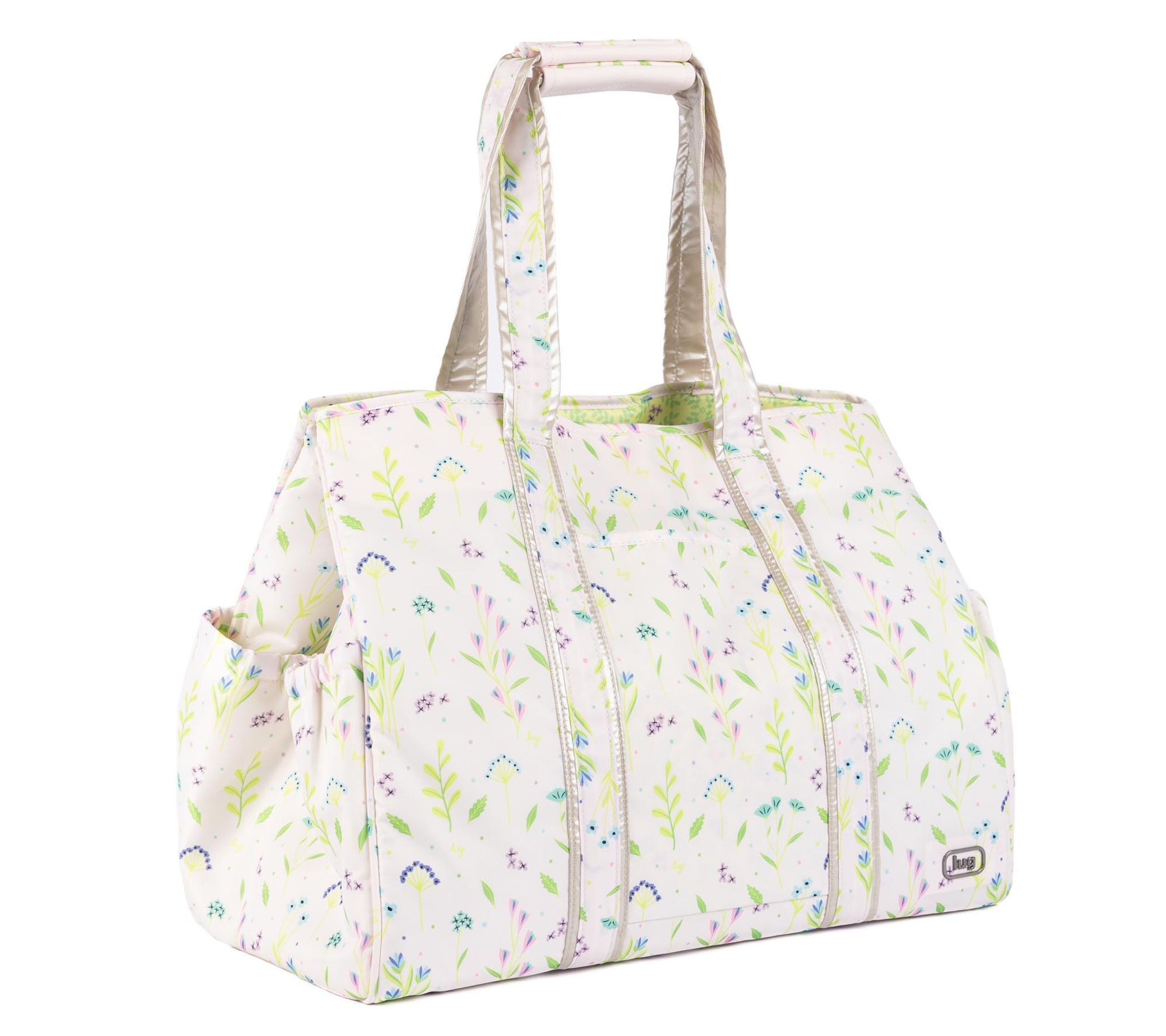 Whether you're packing for a weekend away or heading to the gym, this oversized tote keeps everything tidy with smart exterior pockets, a trolley sleeve for easy travel, and easy-to-grip handles for comfortable carrying. The roomy interior offers organized cargo and mesh pockets, plus a removable support board to handle your essentials with ease. From Lug.