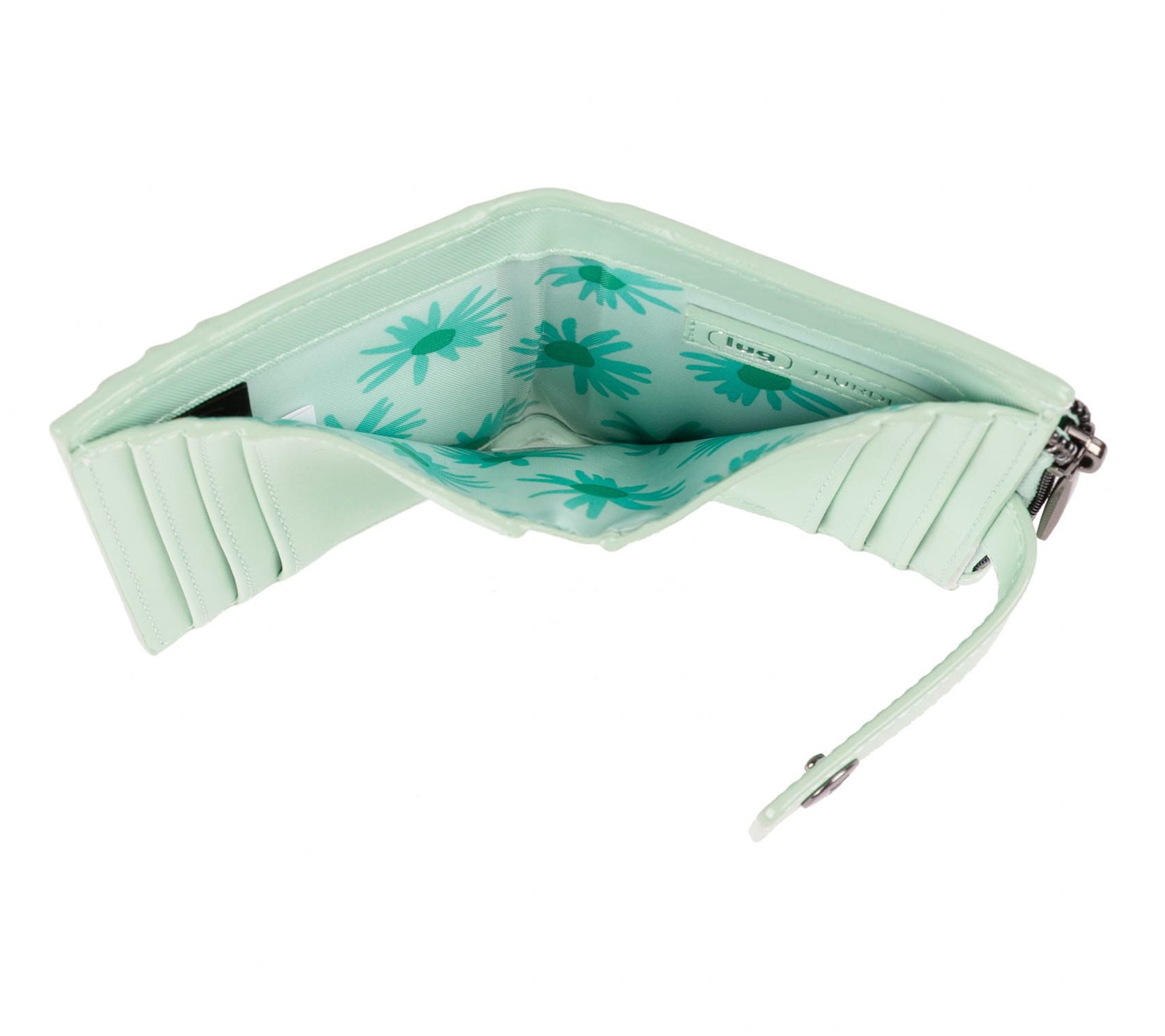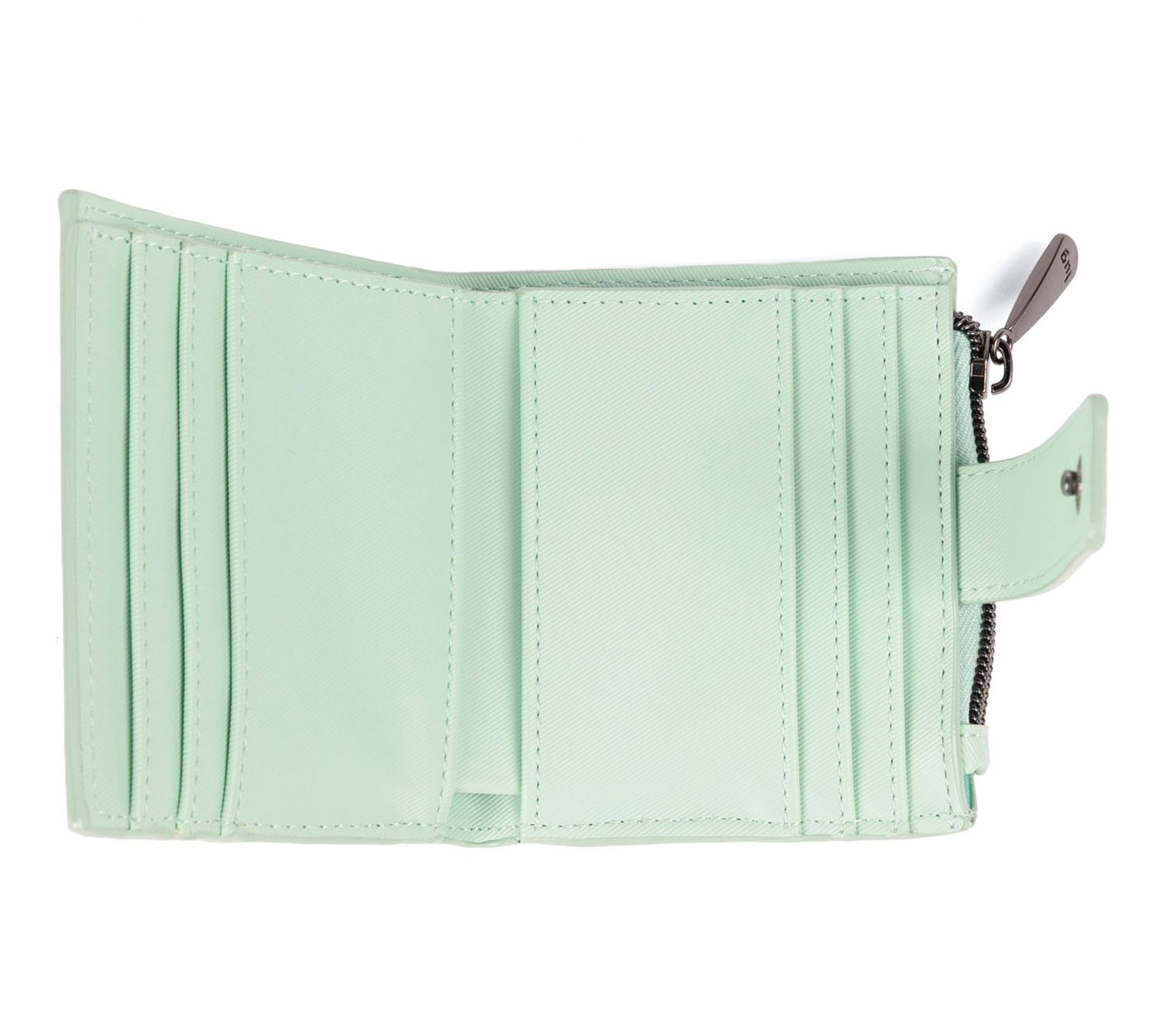 • Snap closure, three exterior card slots, zip closure coin pouch on rear, gunmetal hardware, floating Lug logo, RFID design