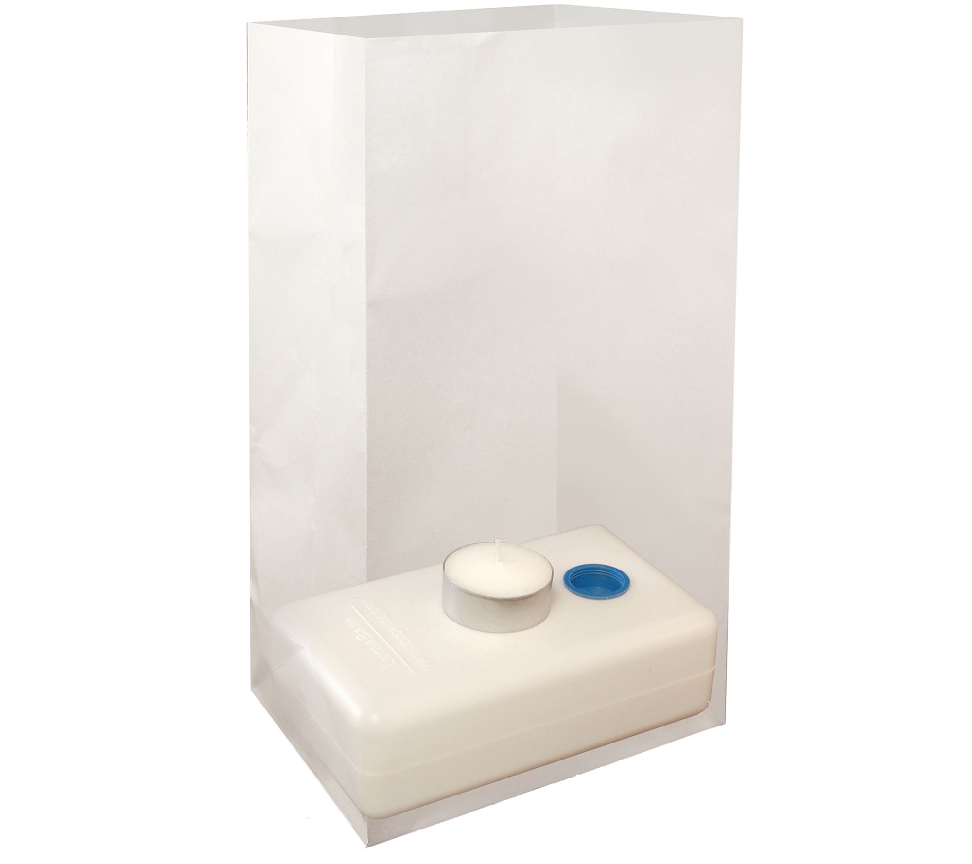 Anchor your luminaria bags with these plastic LumaBases. When filled with sand or water, each base helps keep your candle and bag from easily shifting. From LumaBase.