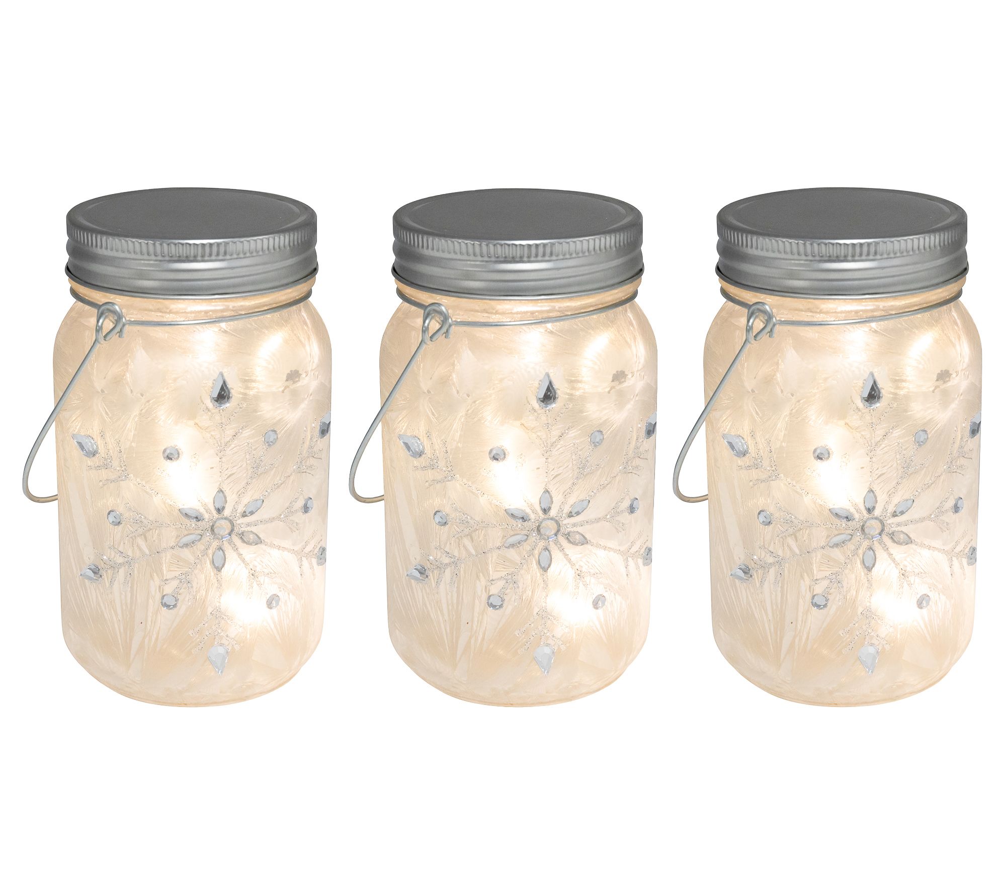 LumaBase 3ct Battery-Operated Snowflake Glass Mason Jars