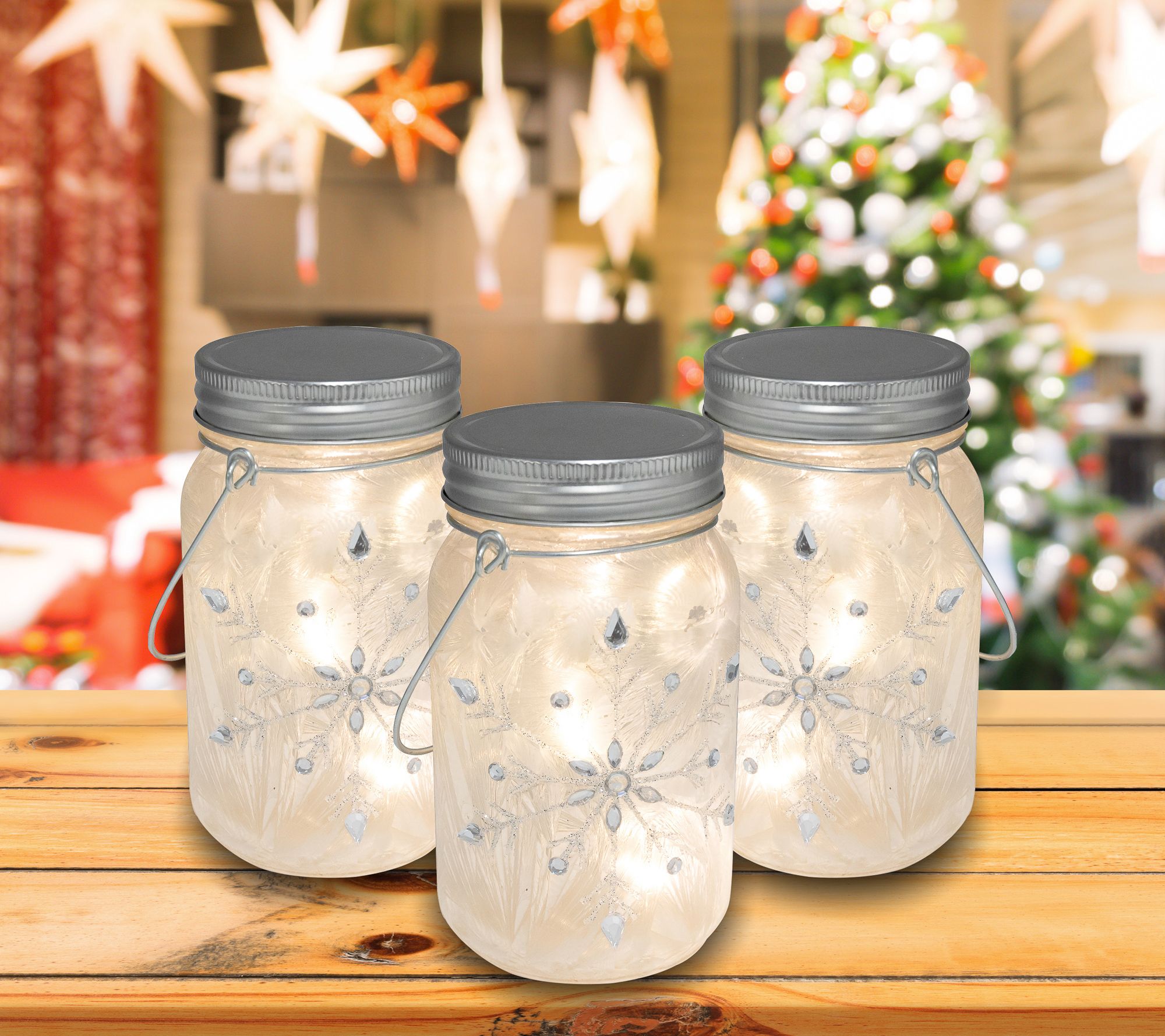 • Includes three lighted mason jars