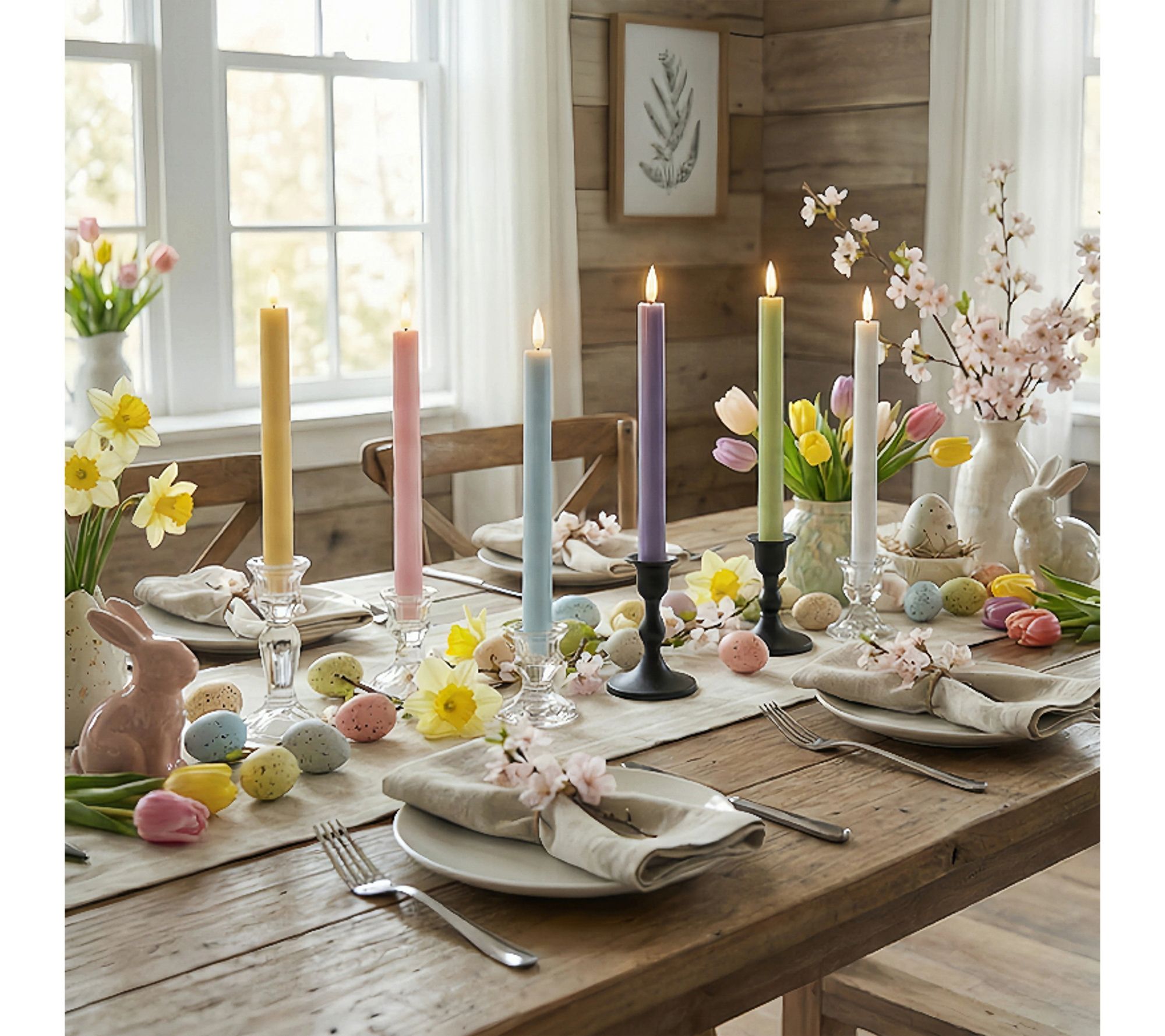 LumaBase Battery Operated 3D Flame Taper CandlePastel Set
