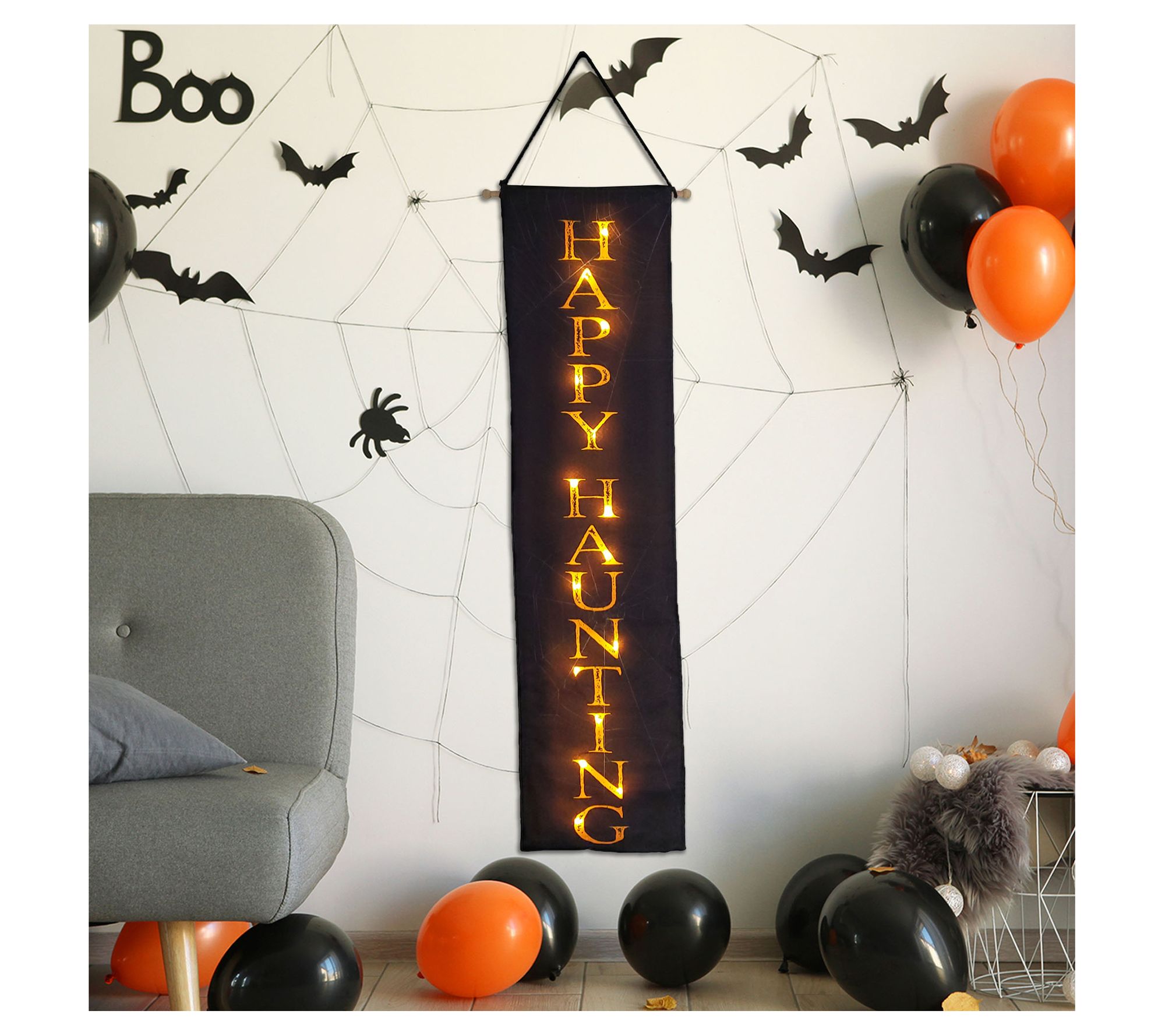 LumaBase Battery Operated LED Lighted Wall Banner-Happy Haunt