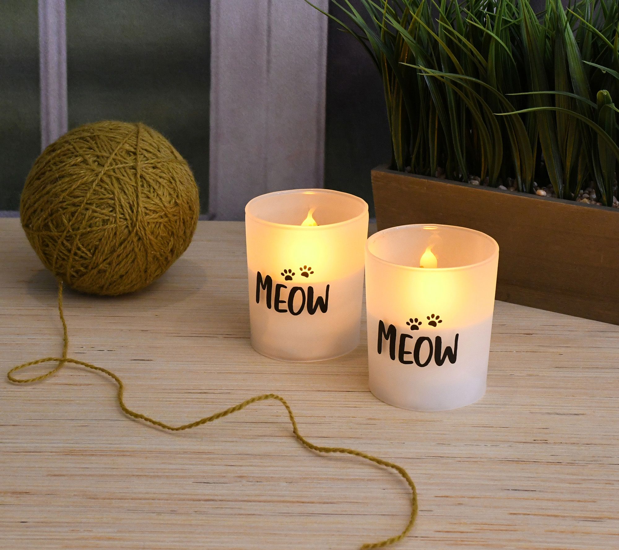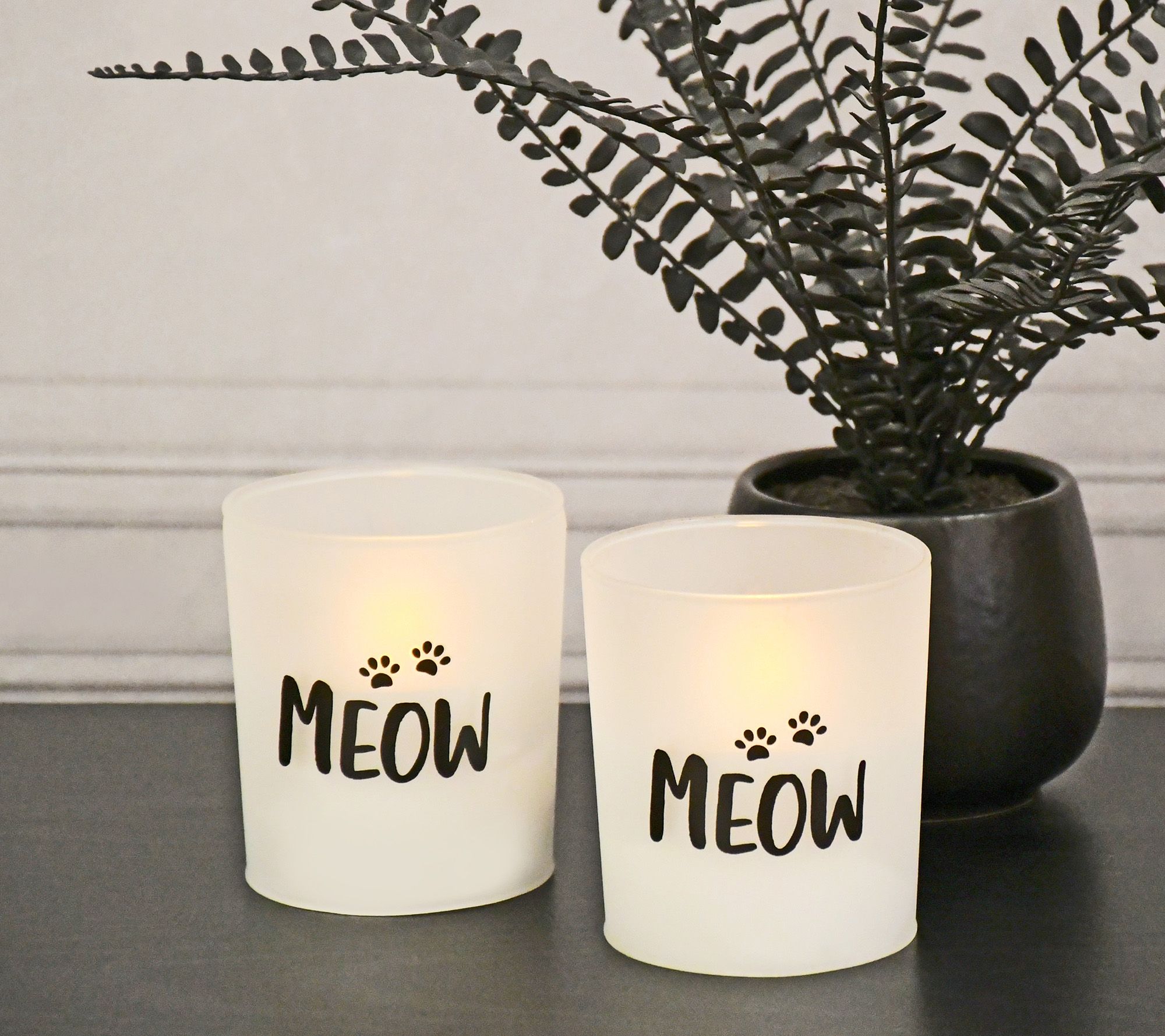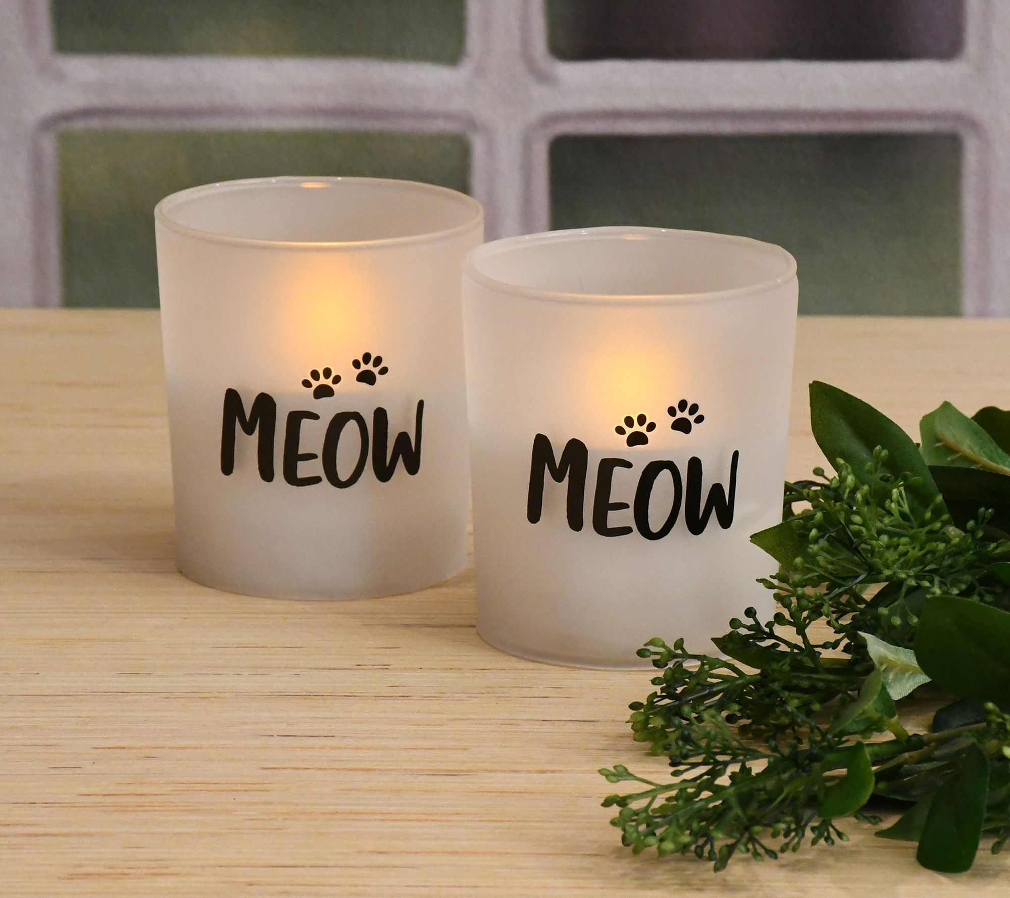 LumaBase Battery Operated Meow Glass LED Candles - Set of 2