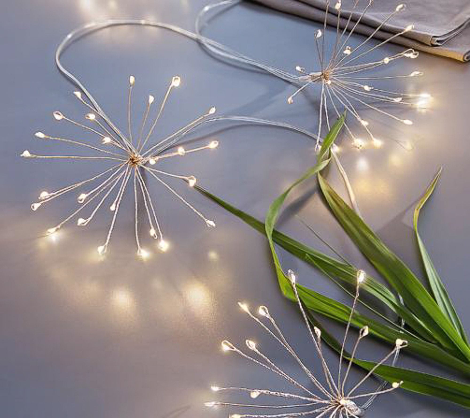 Create a glowing atmosphere for your holiday decor with this string of starburst lights that operate with a timer function for a merry shine after dark. From LumaBase.