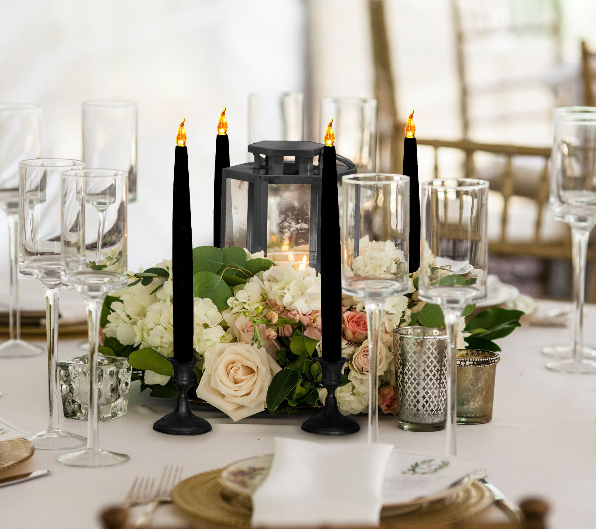 LumaBase Battery Operated Taper Candles- Black,4ct