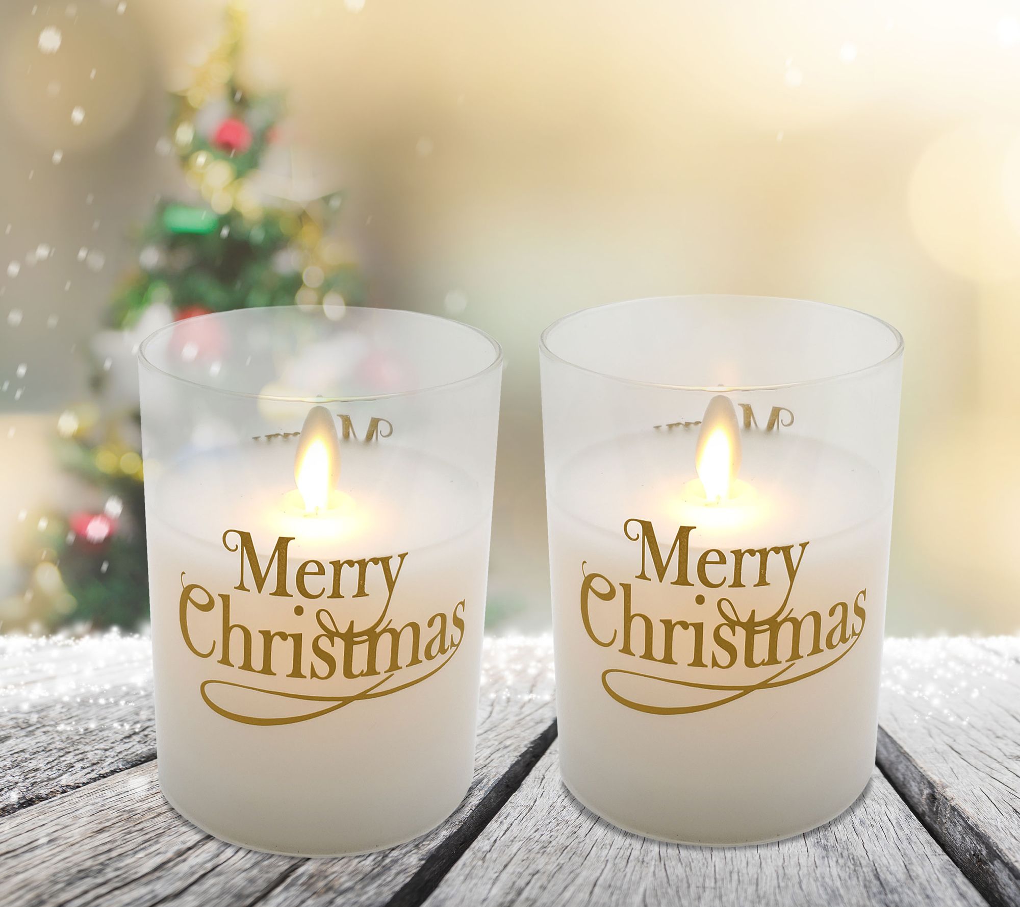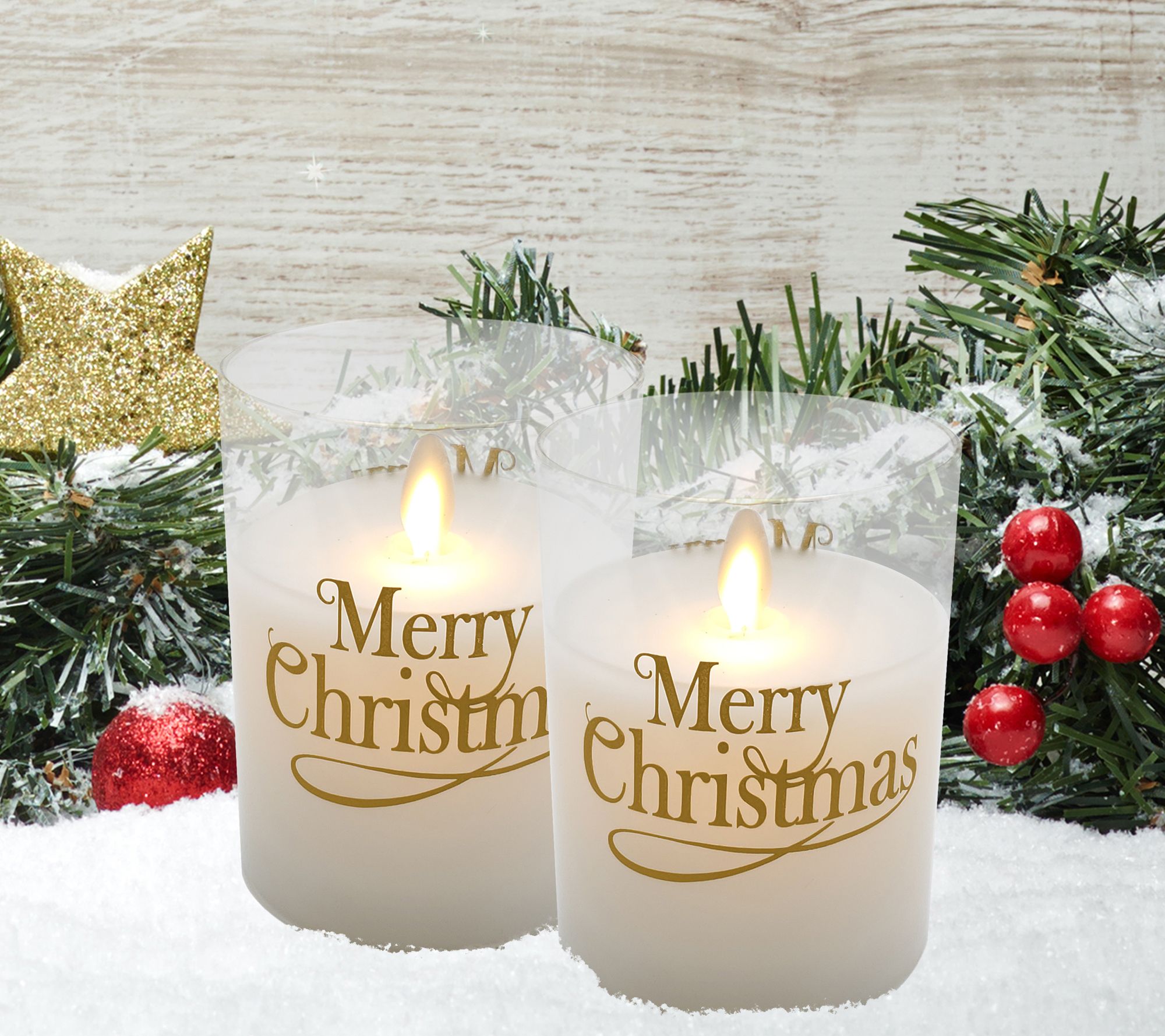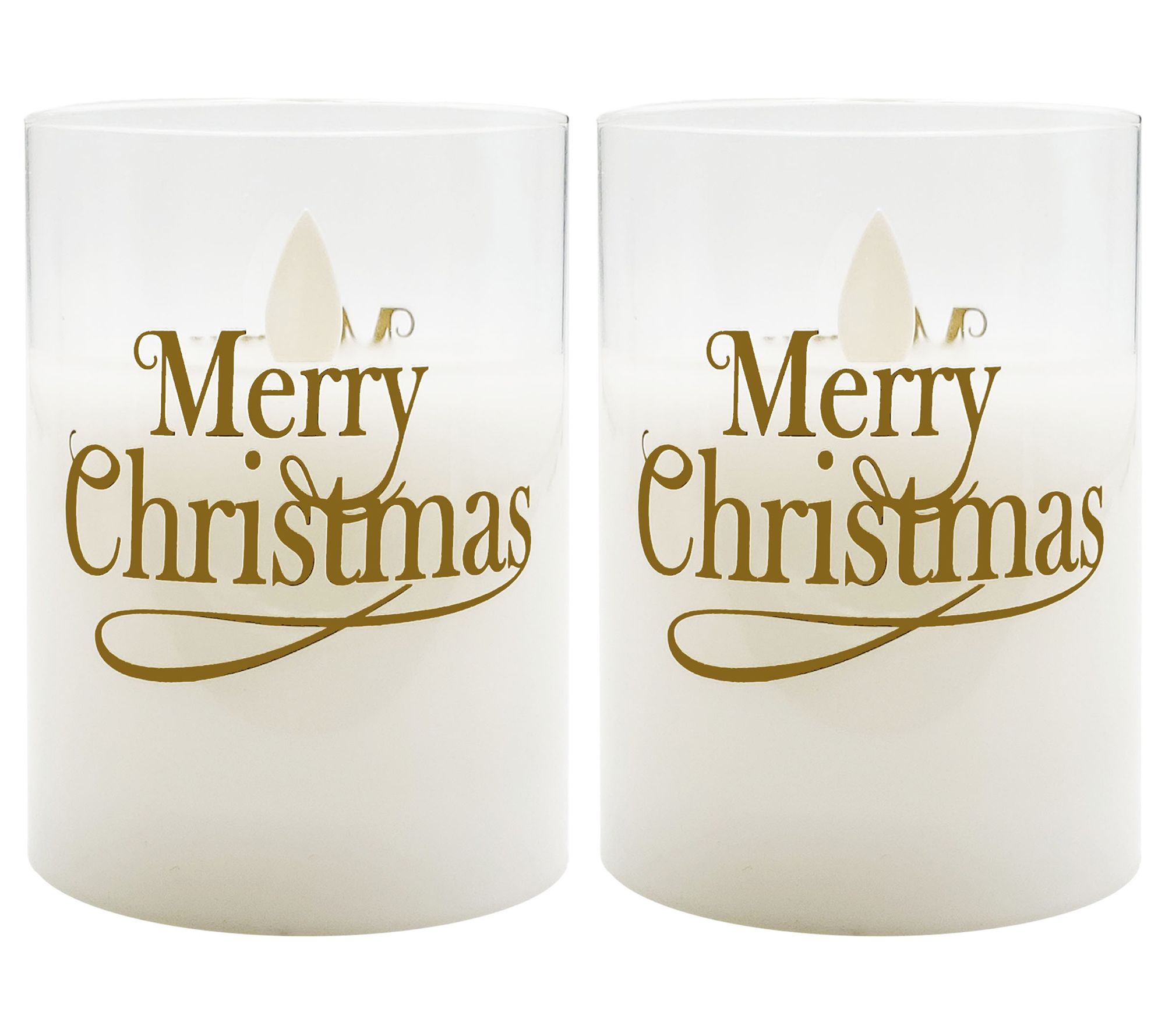 LumaBase LED Glass Candles, Merry Christmas- Set of 2
