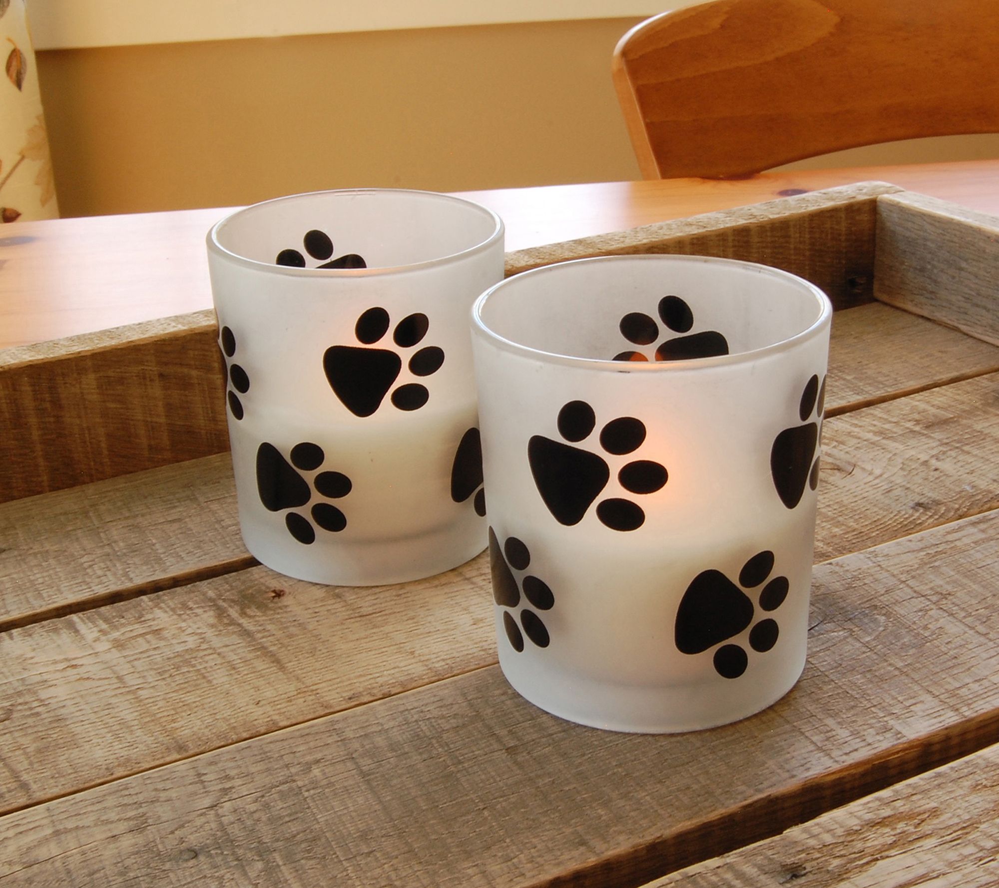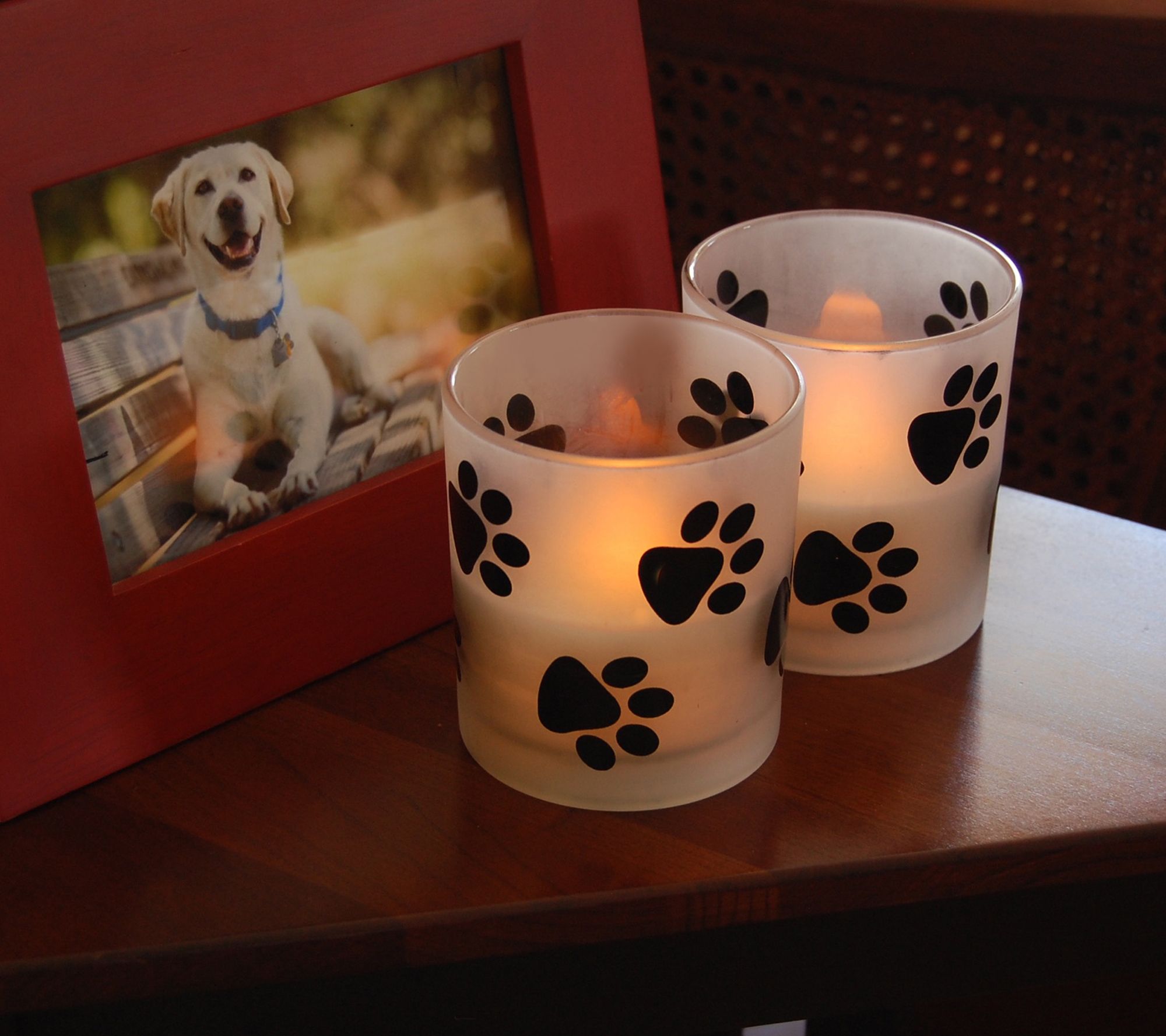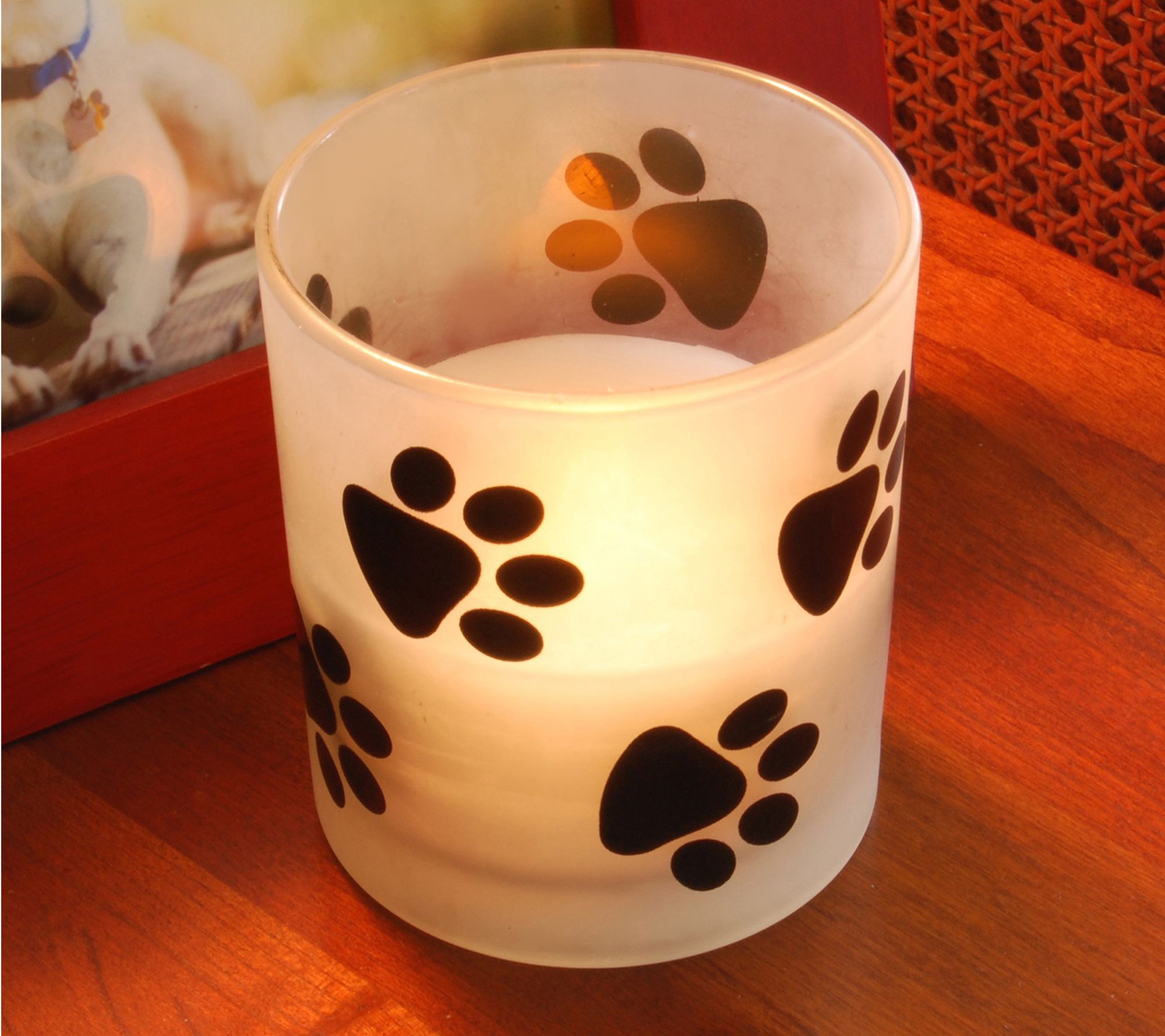 LumaBase Set of 2 Flameless Candles in Paw Glass Holders