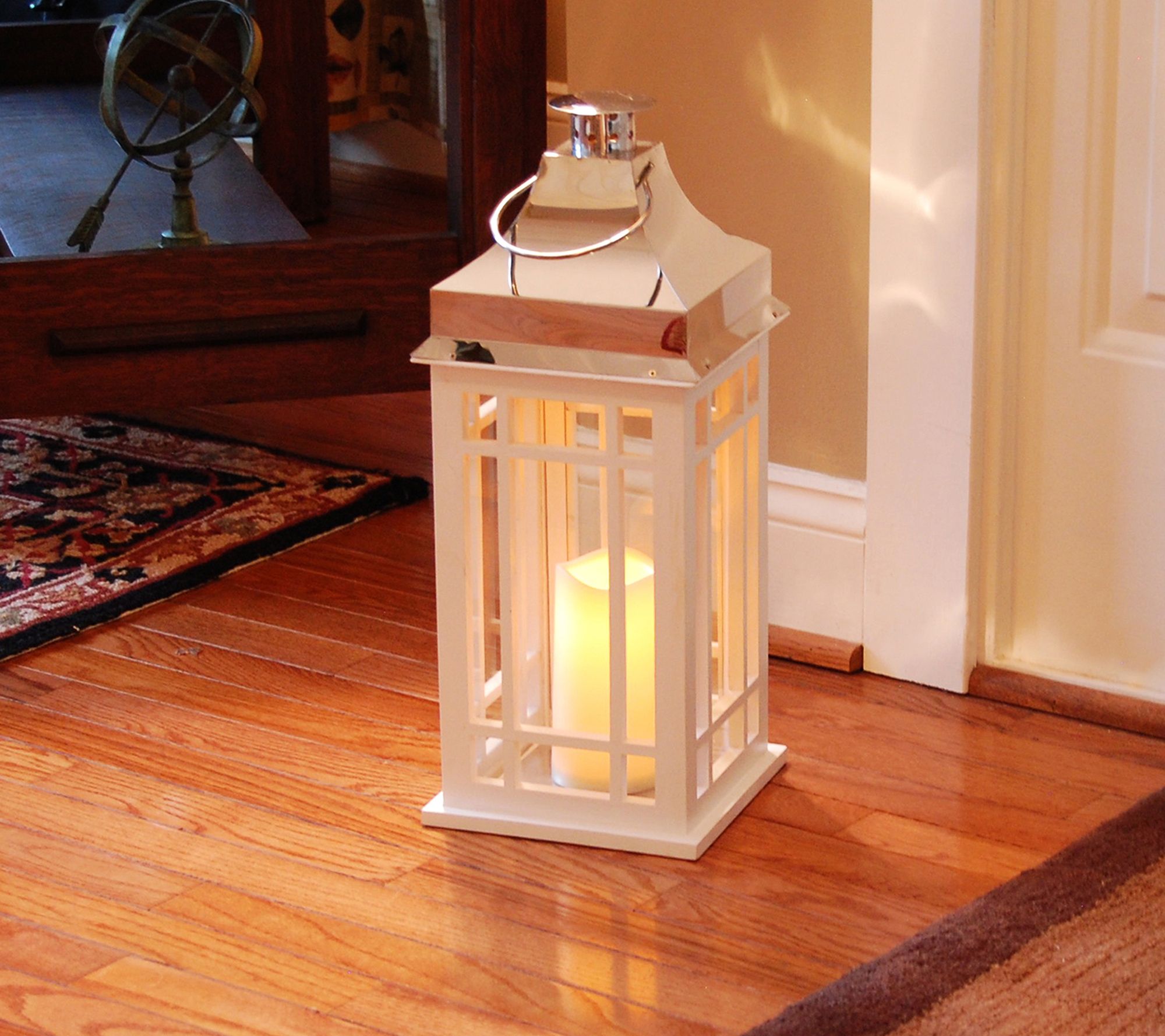 It's never been easier to add elegant illumination to any room than with this timeless white wooden lantern complete with flameless candle. From LumaBase.