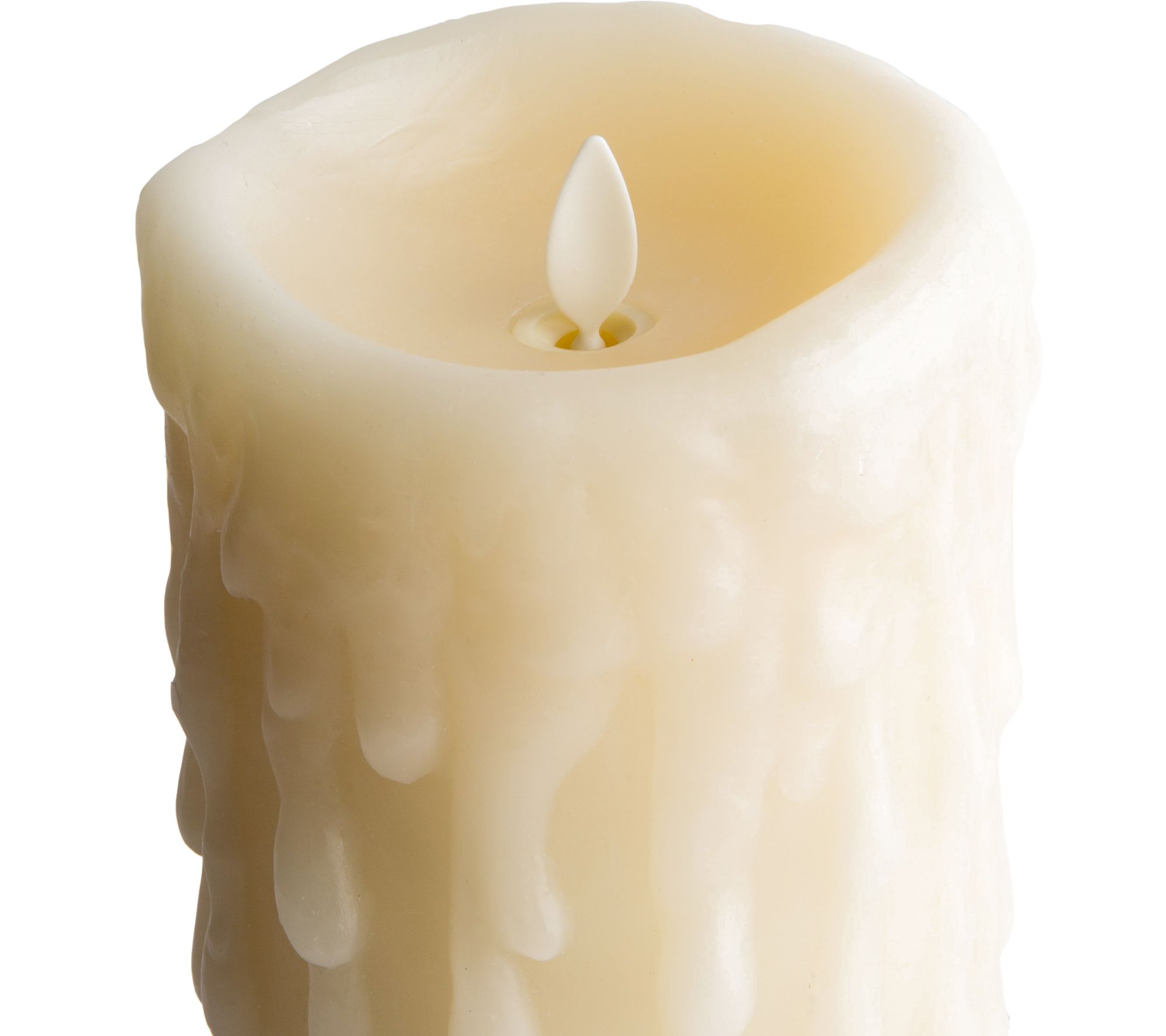 For a melted look without the mess, let this Luminara flameless candle shine. A heavy drip design joins the lifelike flame effect for a real warm, cozy glow. From Luminara.