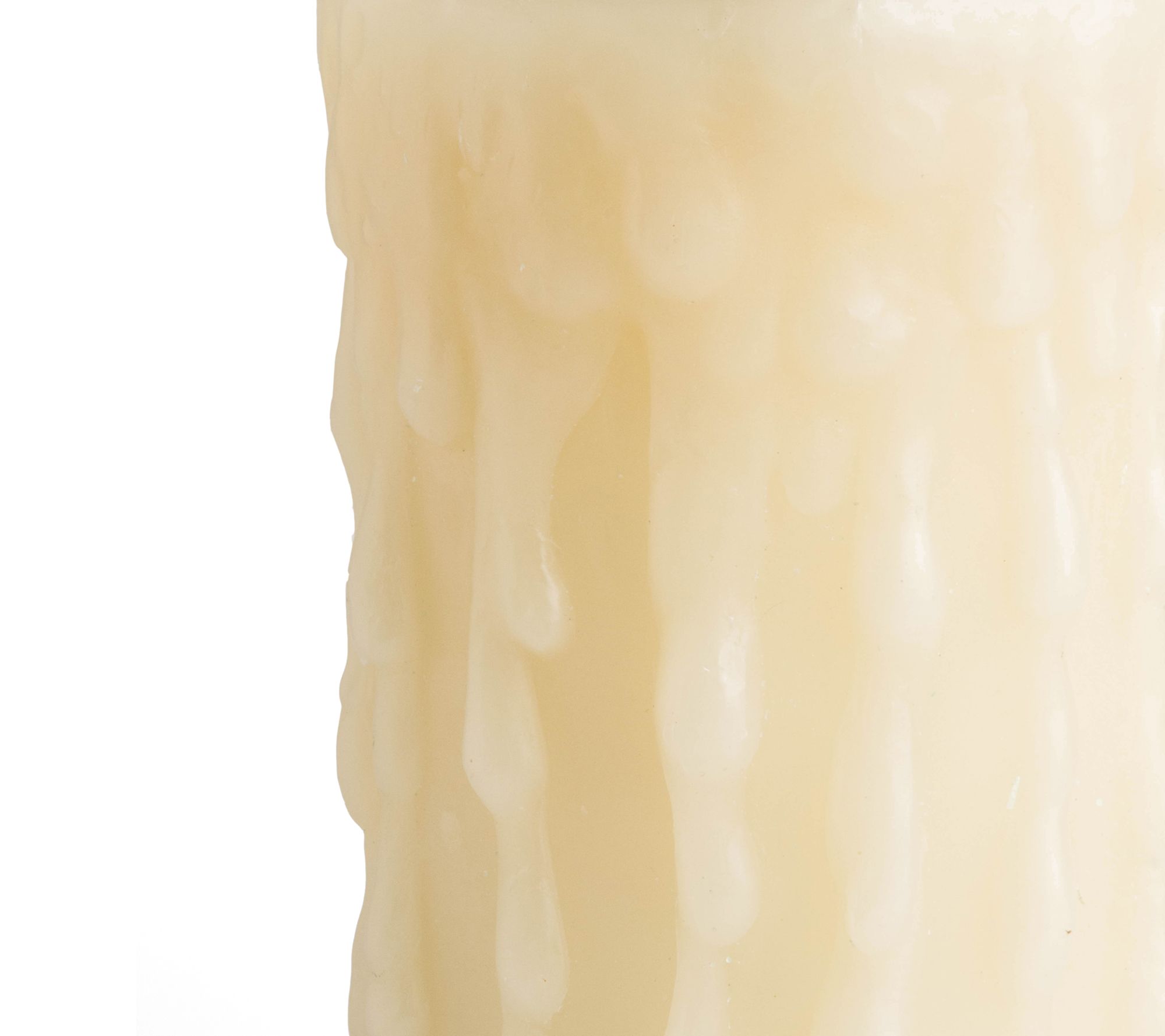 • Unscented, ivory wax with heavy drip look; realistic flame