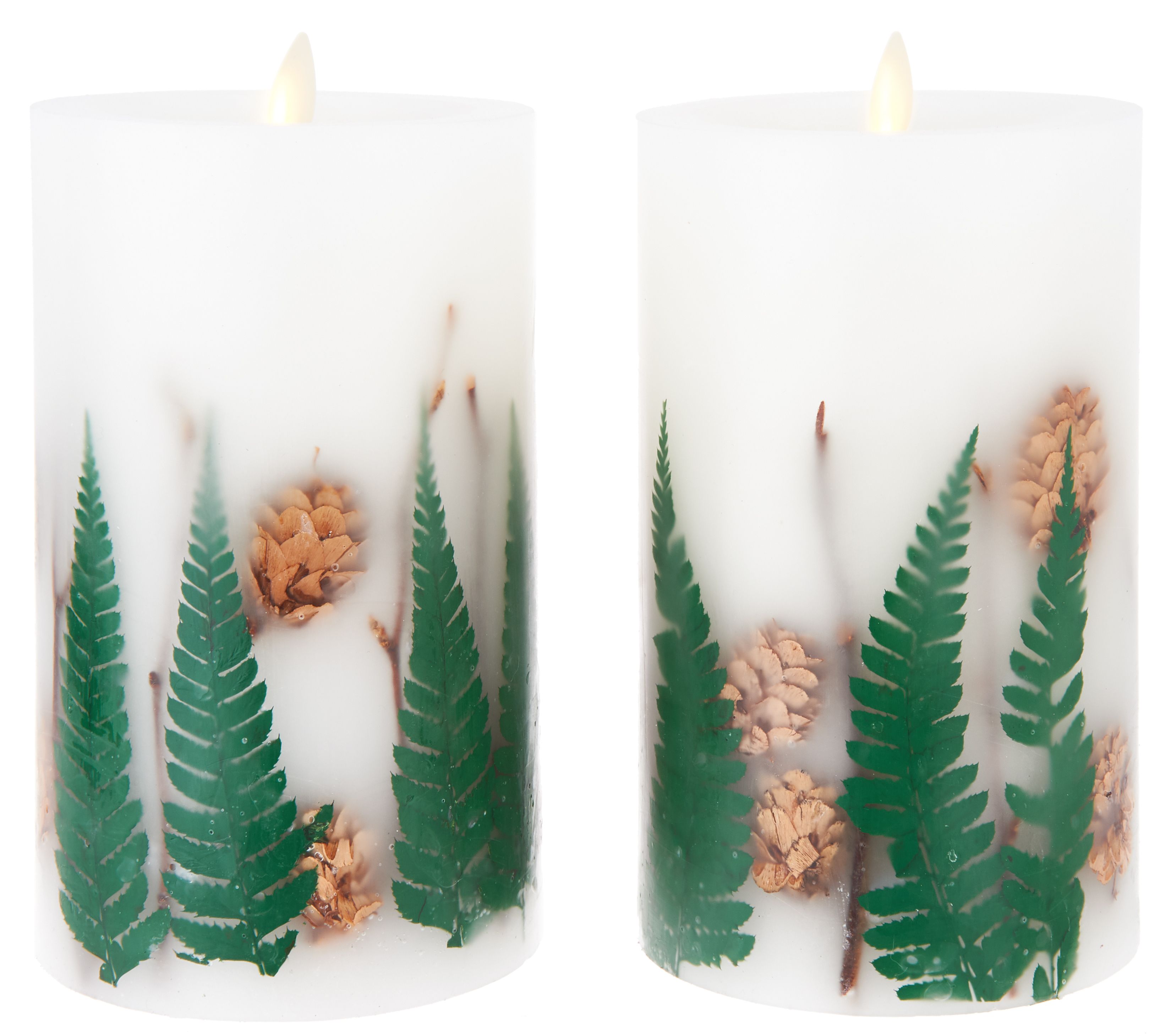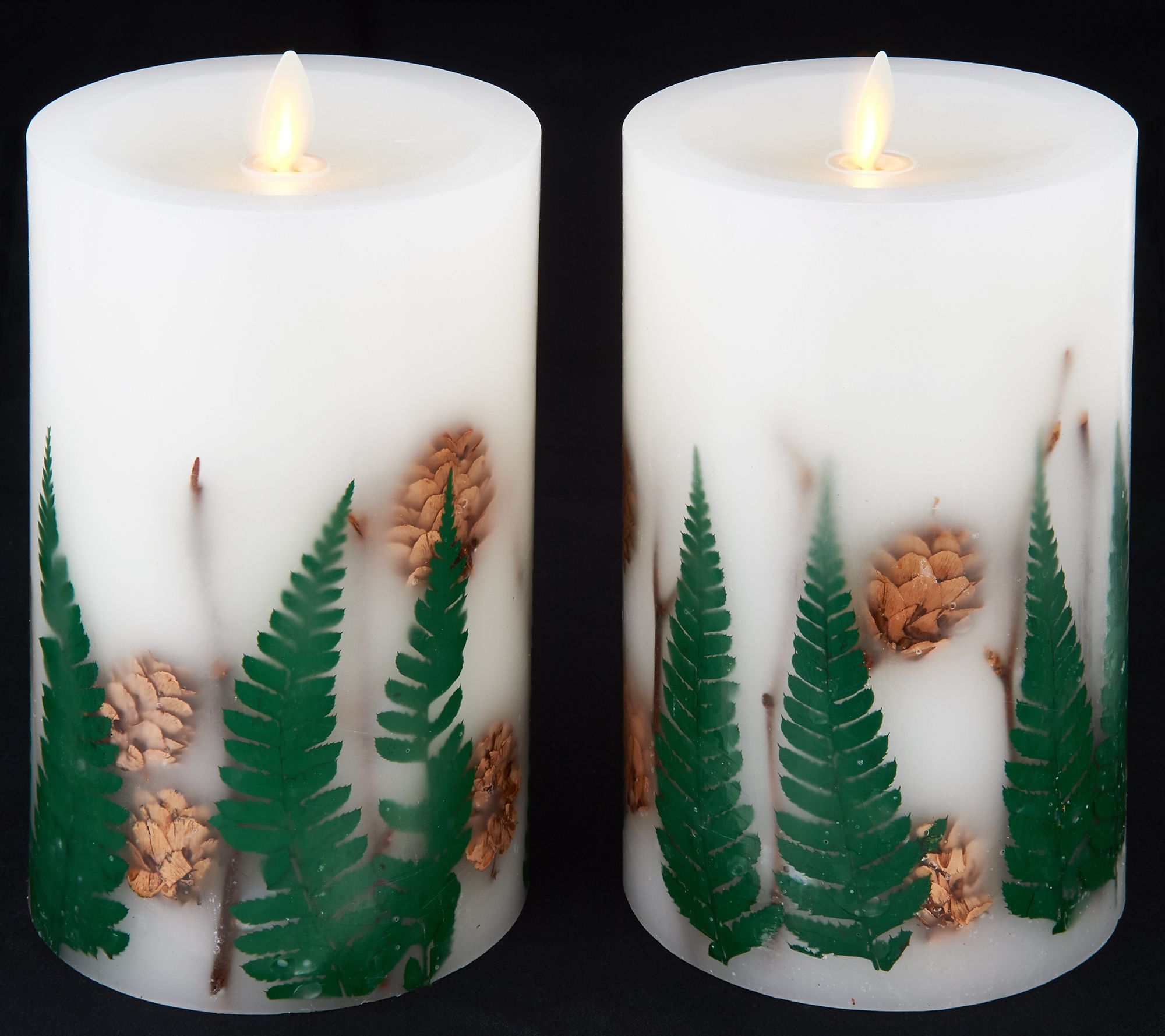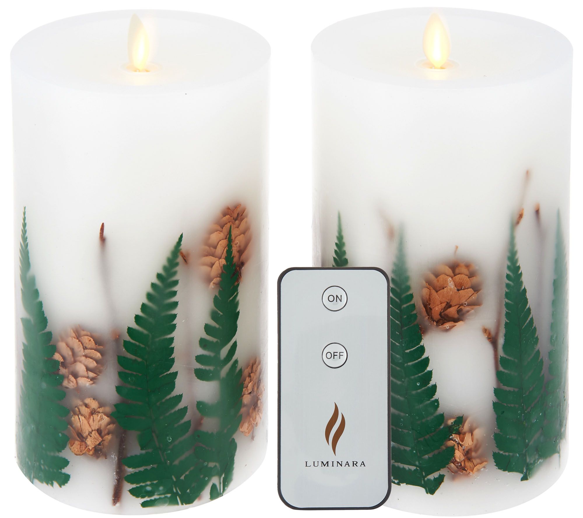 • Includes two 7" inclusion pillar candles and remote with lithium battery