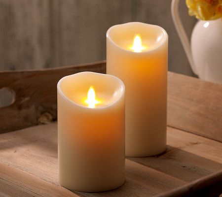 Warm welcome. Add the believable beauty of realistic candlelight to your home decor with these battery-operated wax pillar candles. A safe and easy alternative to real candles, they eliminate the hassles of an open flame. You don't even need to remember to put them out. Just set the built-in timer, and the candle will illuminate for five hours at the same time every day. From Luminara.