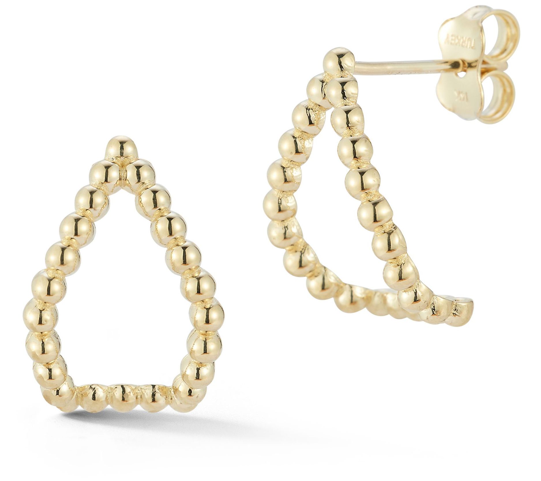 Luminosa Gold Beaded Curved Open Earrings, 14K