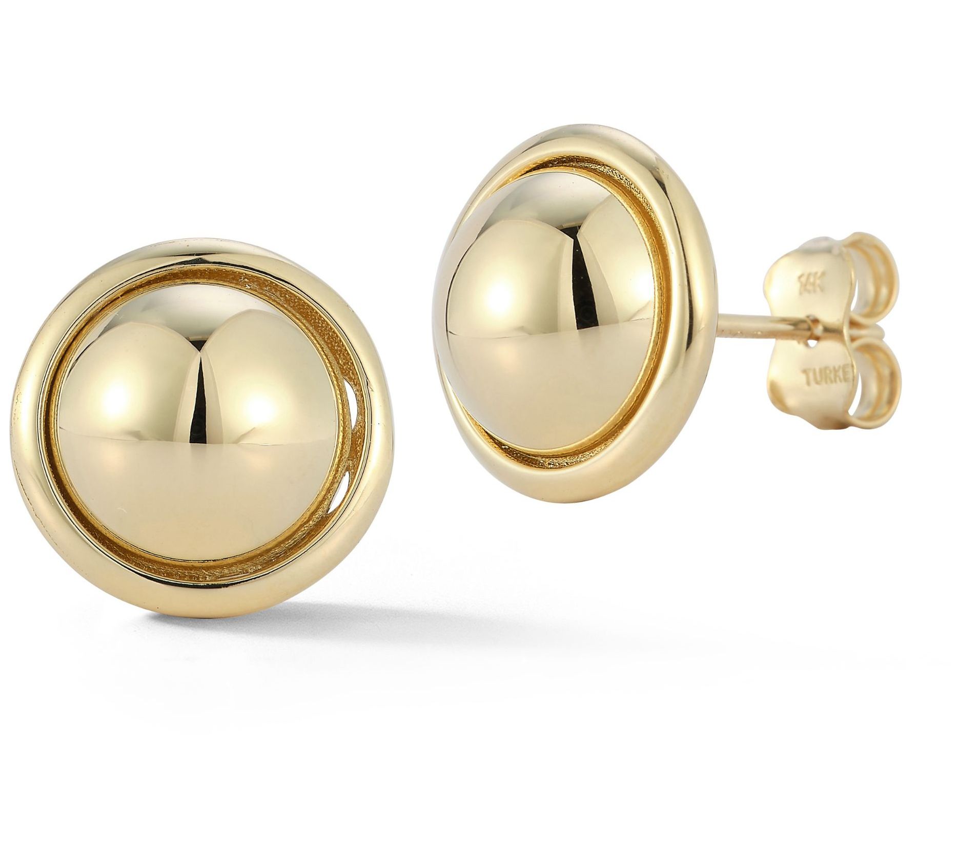 Perk up your look with the shimmering personality of these 14K yellow gold earrings featuring a rounded design that's cute as a button. From Luminosa Gold.