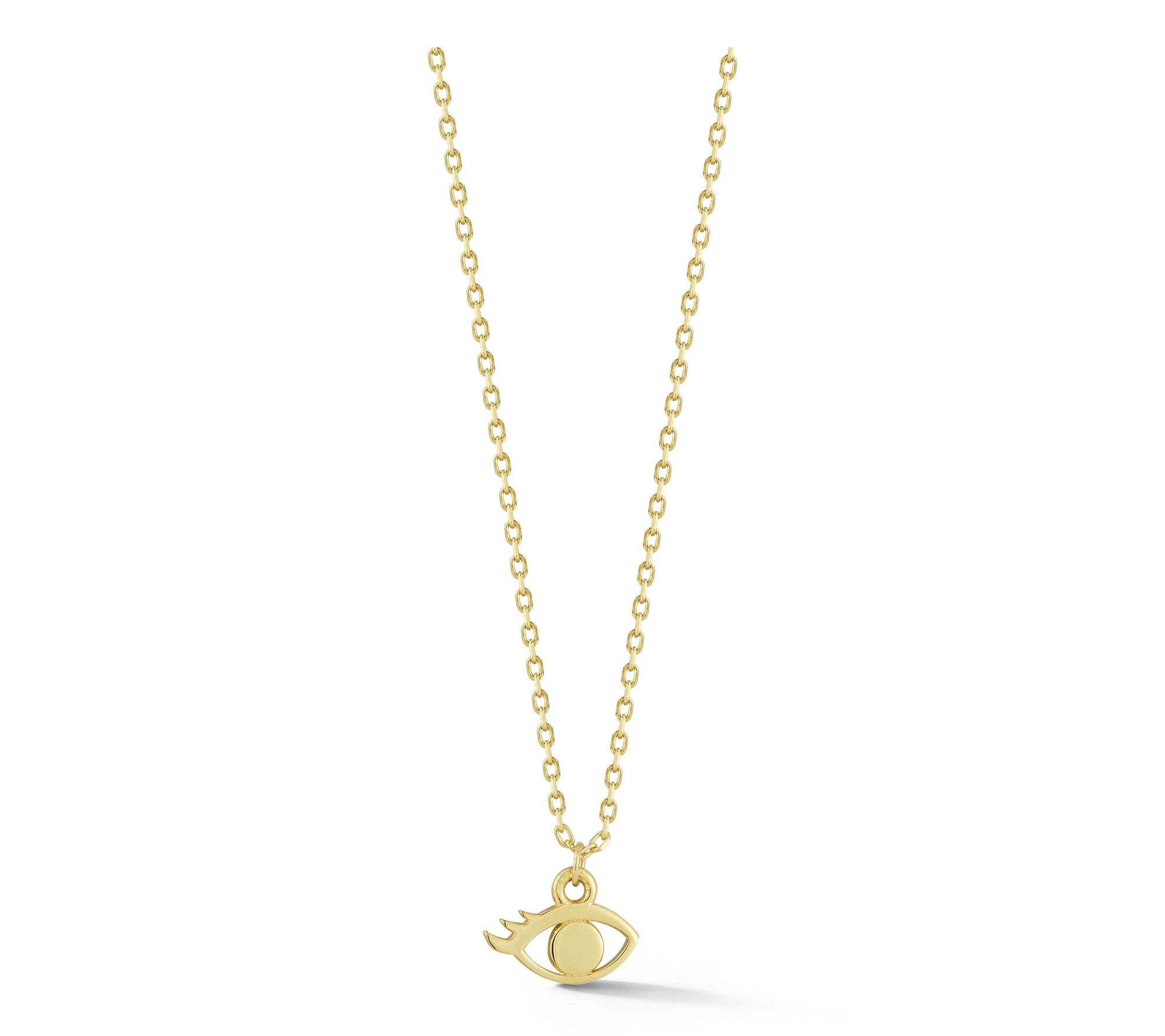 Accessorize with a touch of mystique. This 14K gold dainty evil eye pendant, paired with an oval link chain, is the perfect blend of elegance and charm. Whether dressing up for a special occasion or adding a unique accent to your everyday look, this piece is sure to captivate. From Luminosa Gold.