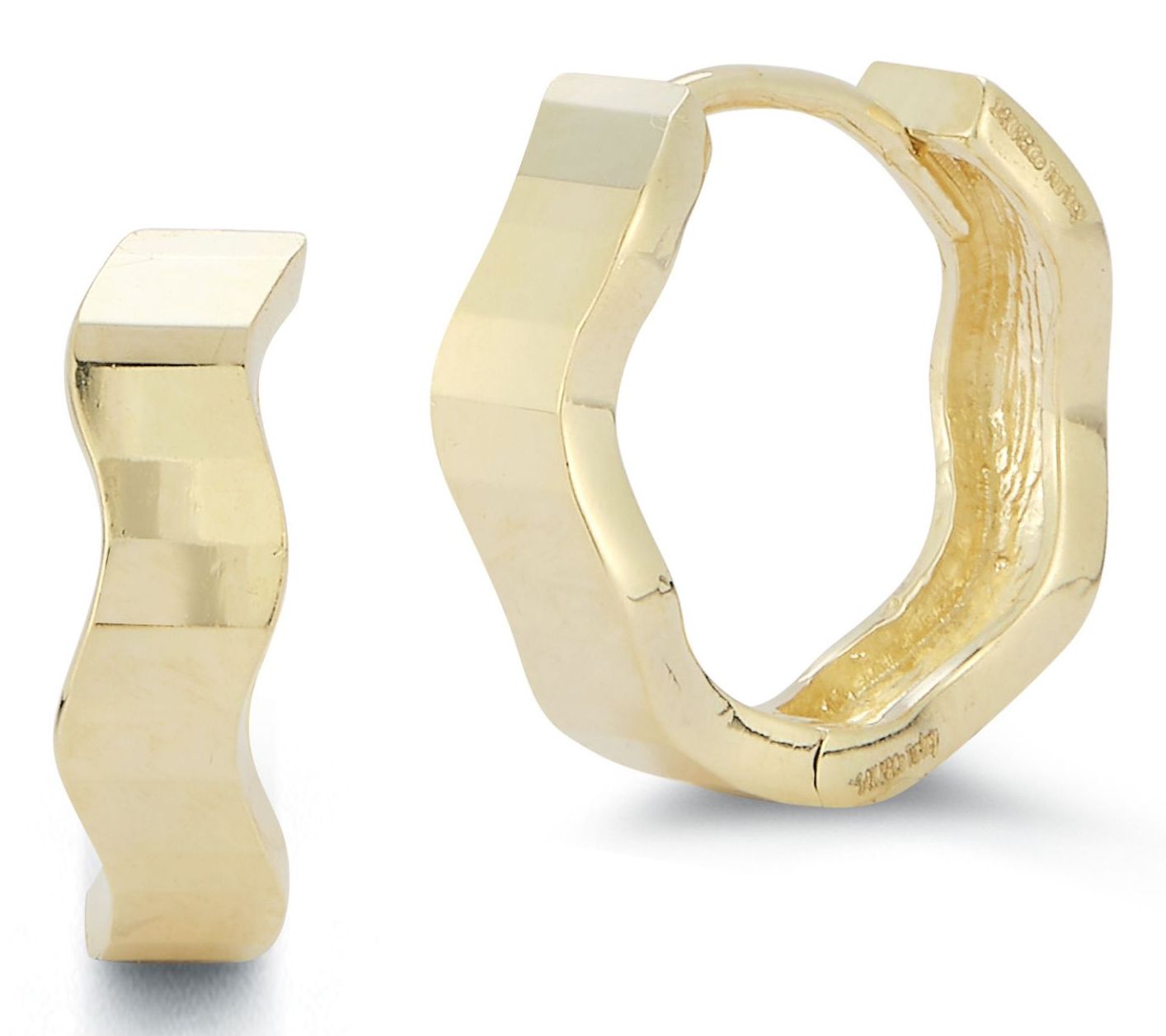 Luminosa Gold Diamond Cut Wave Huggie Hoop Earr ings, 14K