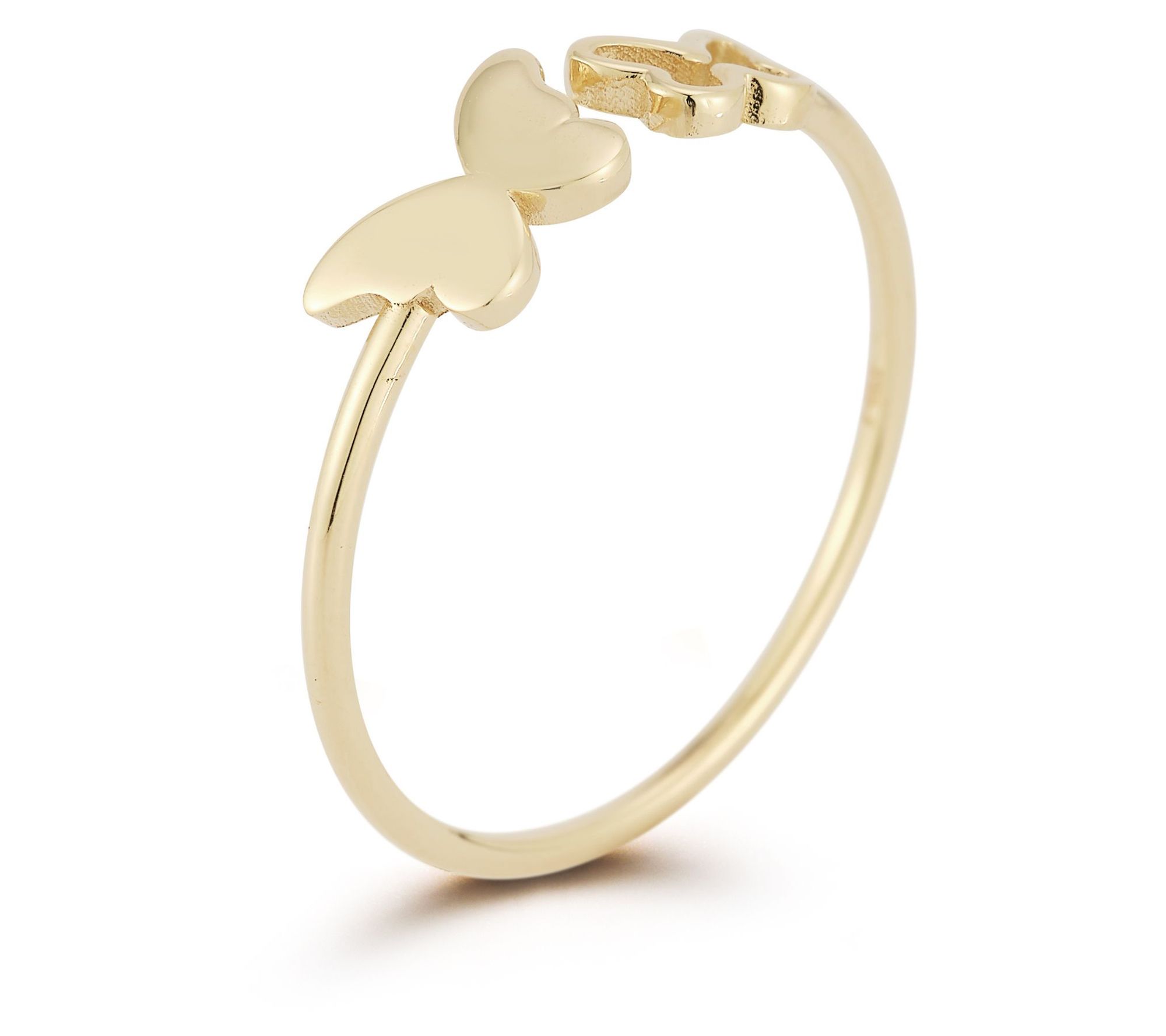 Give your look a dash of free-spirited flair with this double-butterfly cuff ring. From Luminosa Gold.