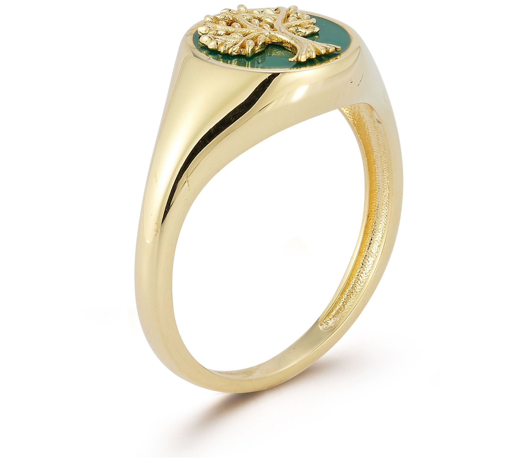 Luminosa Gold E namel Tree of L ife Signet Ring , 14K