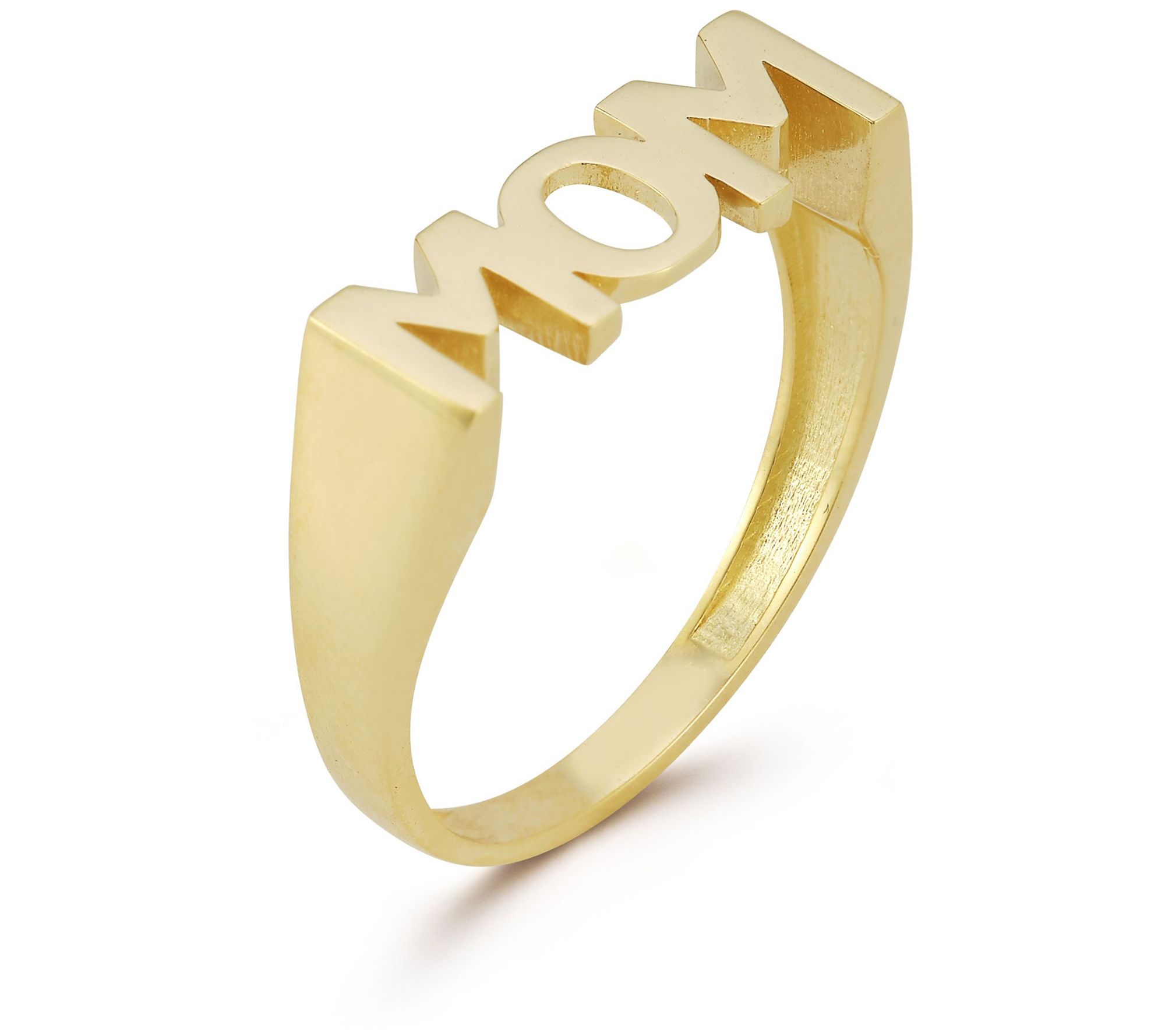 A perfect statement piece for any mother, this striking band ring displays the word "Mom" in block letters and looks great whether worn alone or stacked with other rings. From Luminosa Gold.