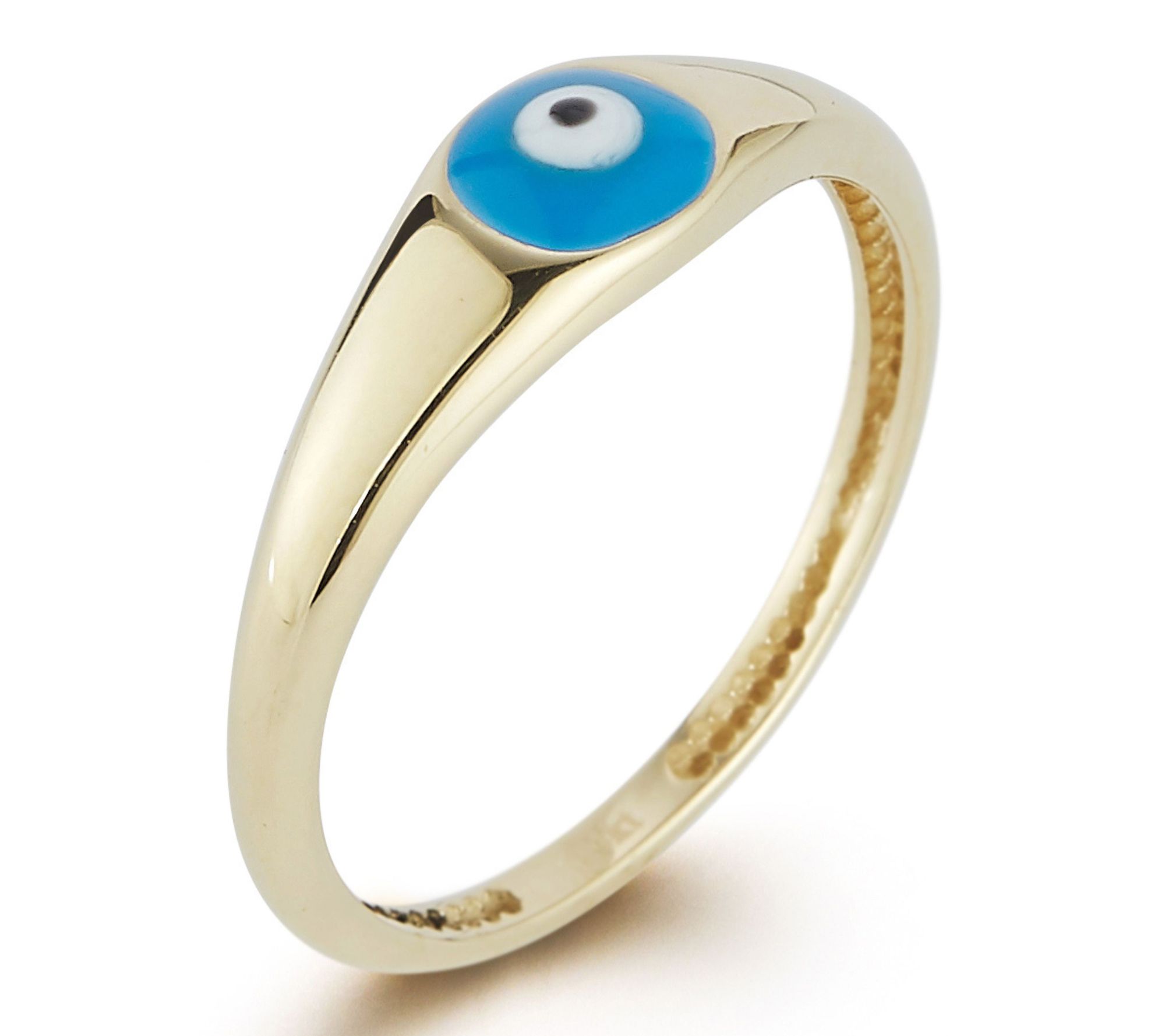 Bring a bit of mystical charm to your everyday with this striking signet ring, highlighted by a bold round enamel evil eye at the center. Whether you're dressing up for an evening out or adding a unique twist to your daily style, this gold ring offers a conversation-worthy accent and a little extra protective flair. From Luminosa Gold.