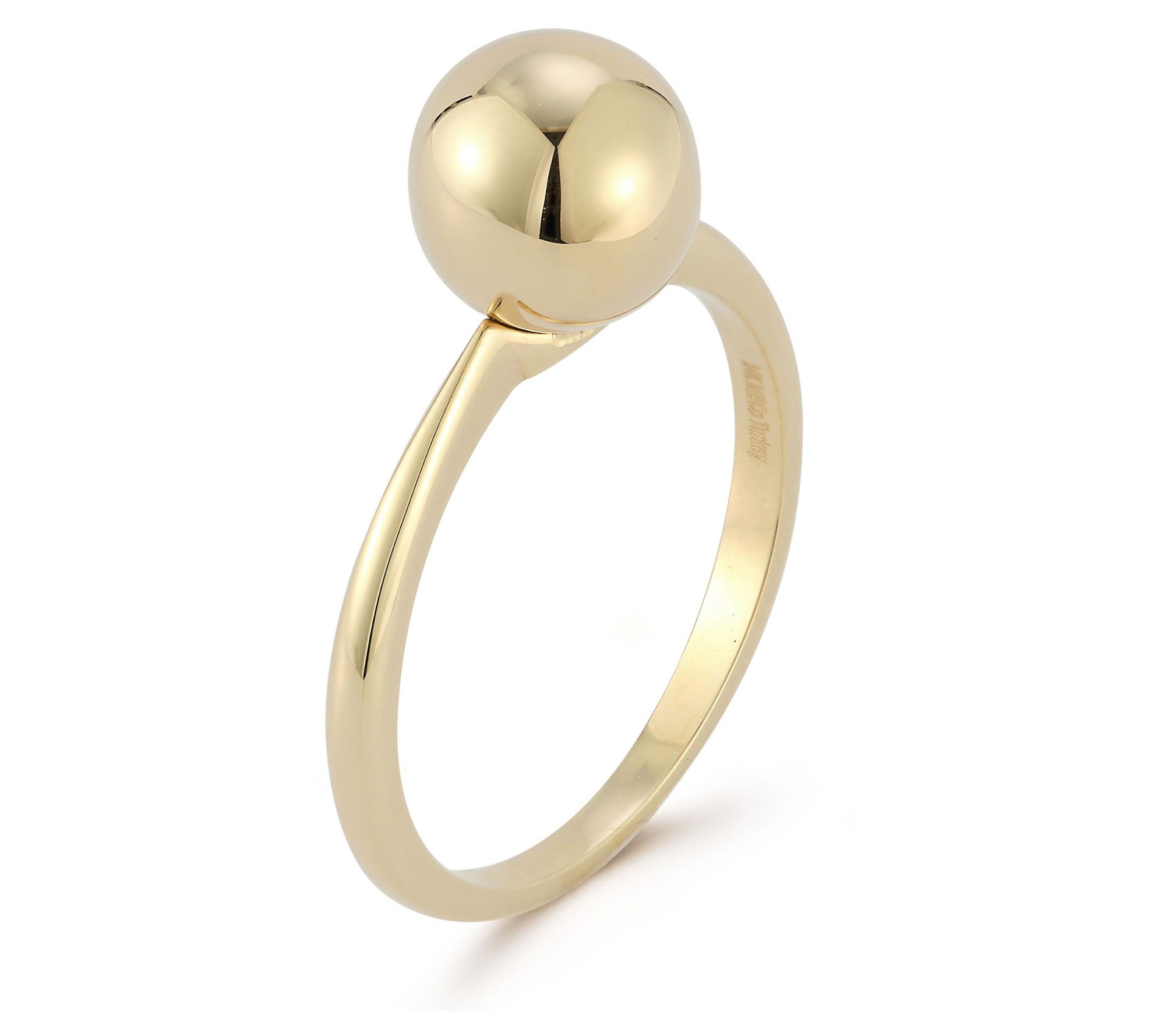 Sometimes the simplest style statements say the most. This 14K gold ring illustrates that perfectly with its single, sleek ball positioned right in the center. From Luminosa Gold.