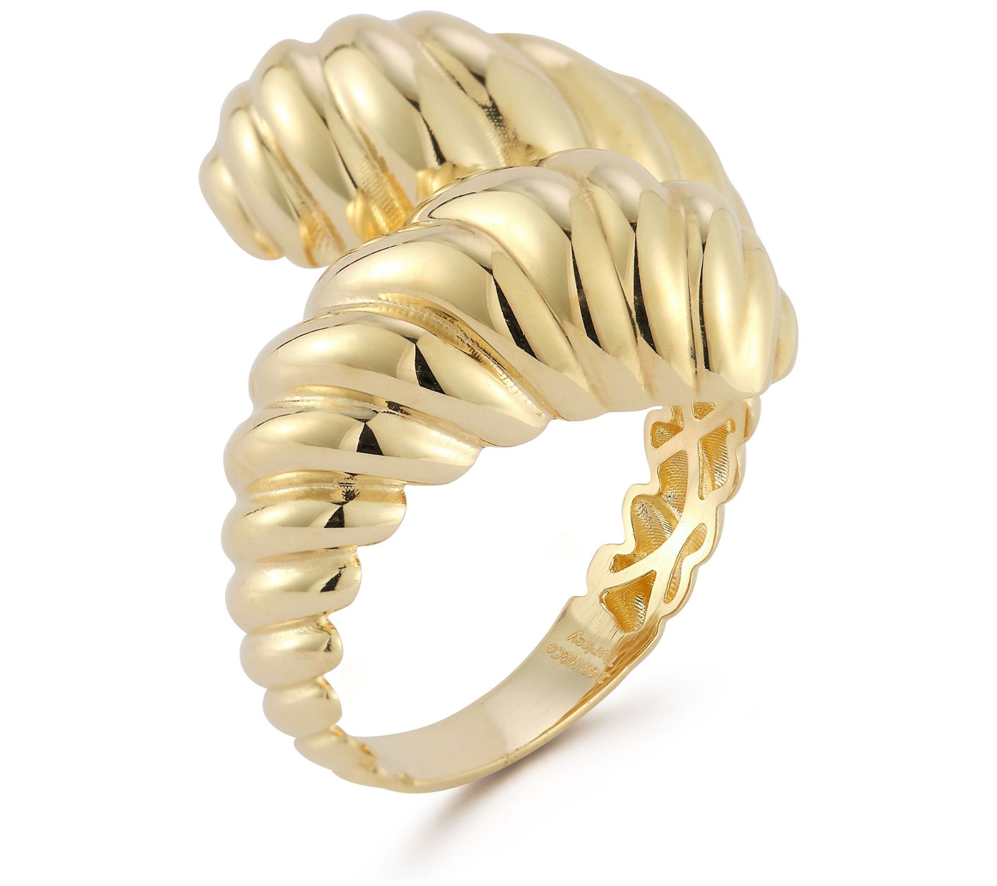 Elevate your finger with the sophisticated simplicity of this bypass ring enhanced with plenty of textured detail. From Luminosa Gold.