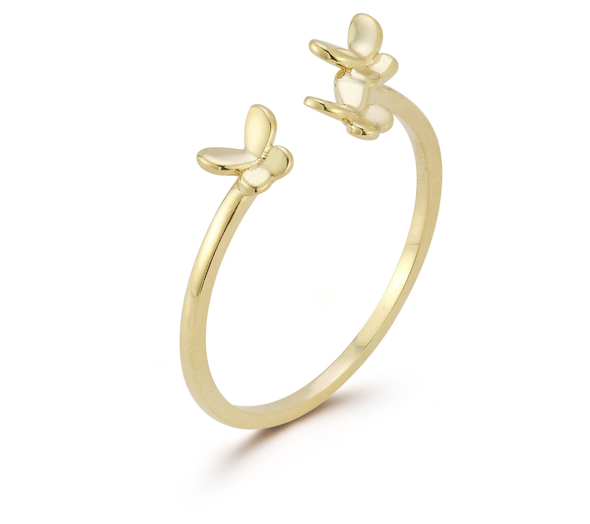 Add a whimsical flair to your look -- or represent a personal transformation -- with this delicate triple butterfly ring. Perfect worn alone or stacked with other rings. From Luminosa Gold.