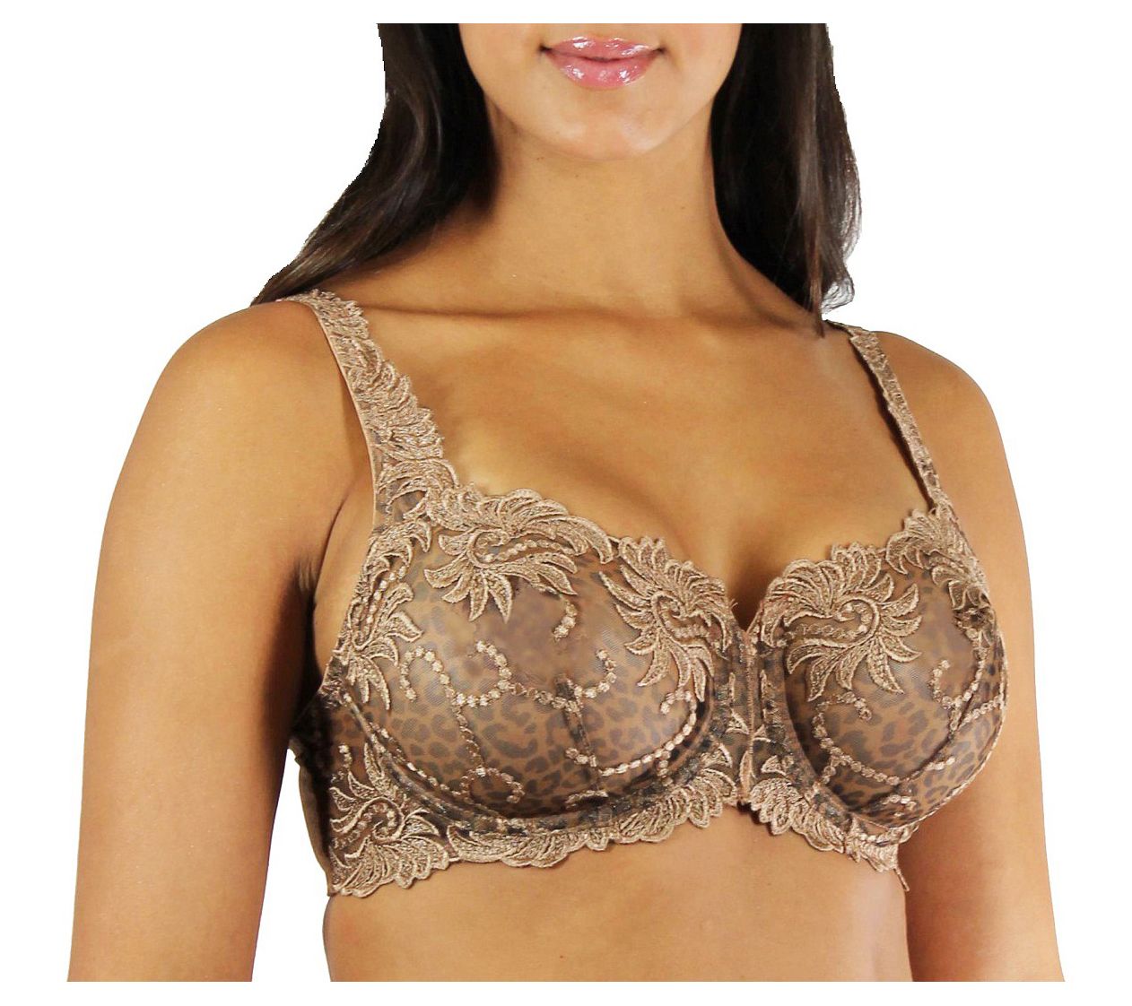 Lunaire Animal Print Mesh Underwire Bra with Embroidery Detail
