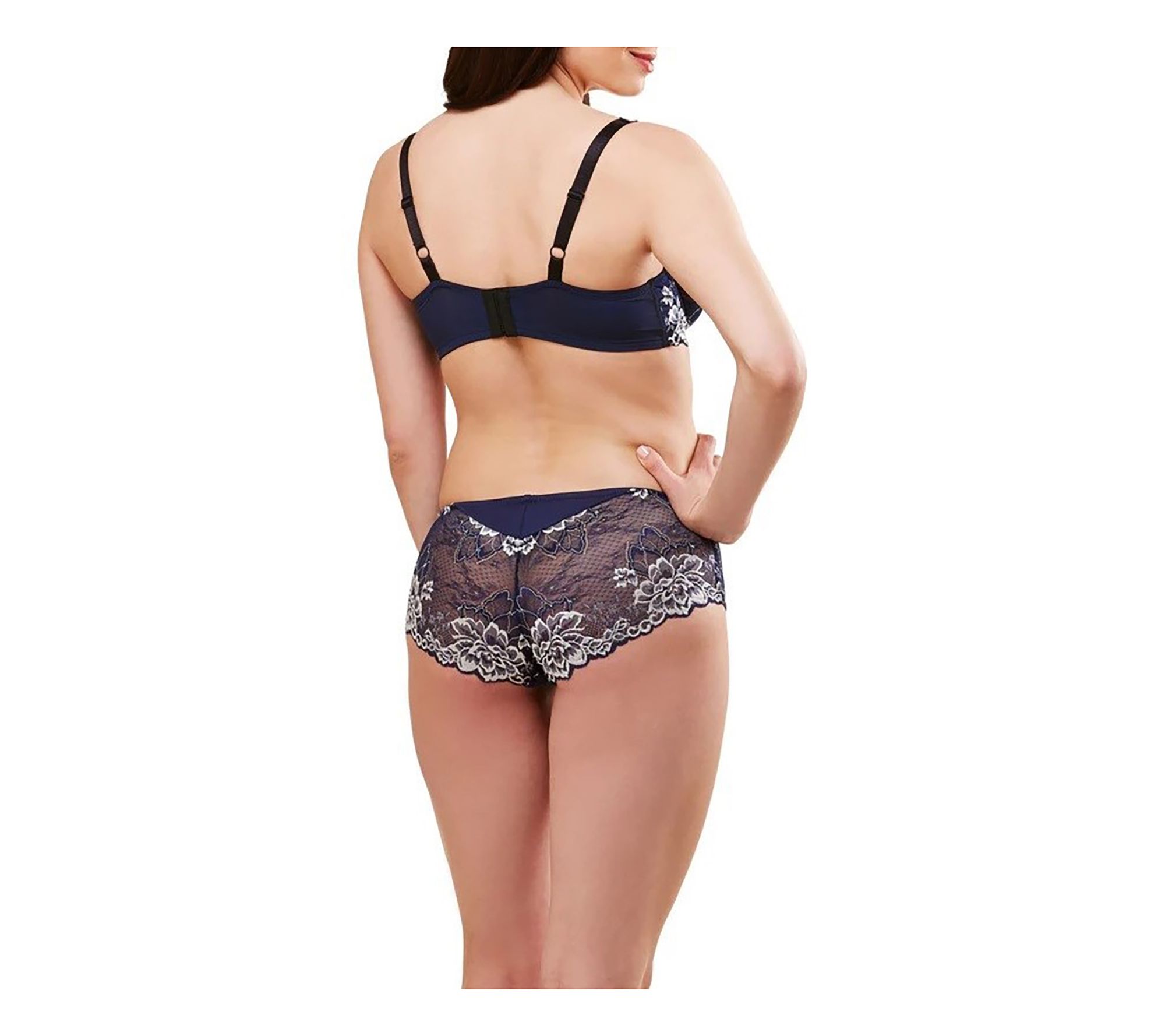 • Features: bikini panty, mesh center front panel, contrast floral lace back