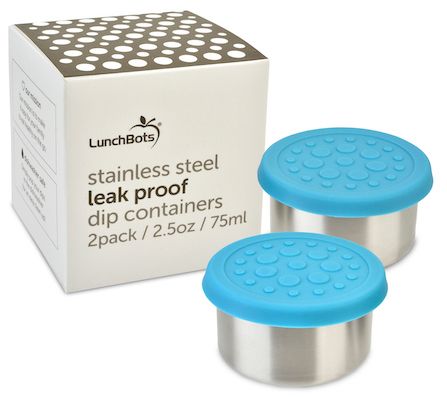 Pack your favorite dips and sauces with ease using these stainless steel condiment containers capped with reliable lids that resist leakage. From LunchBots.