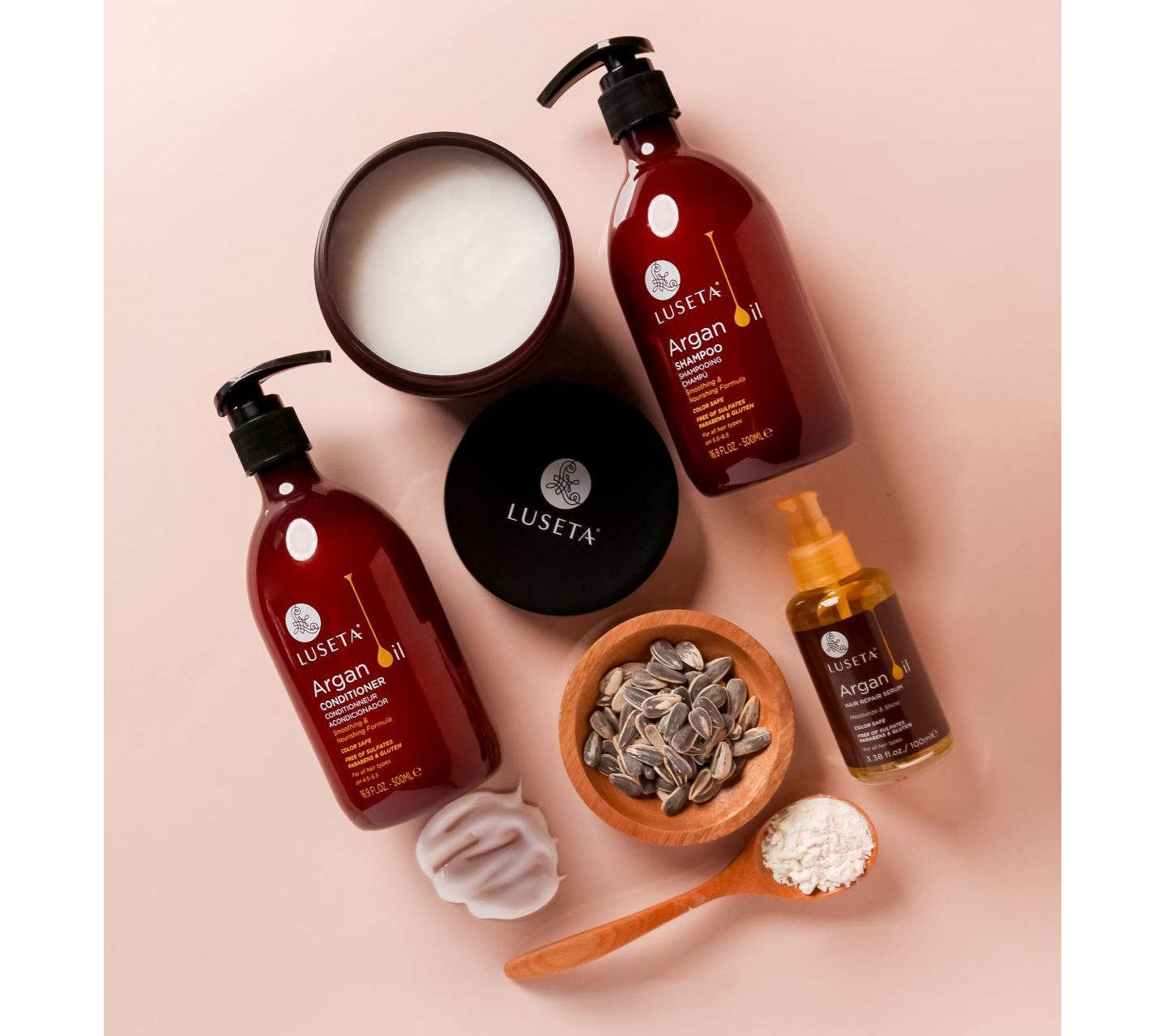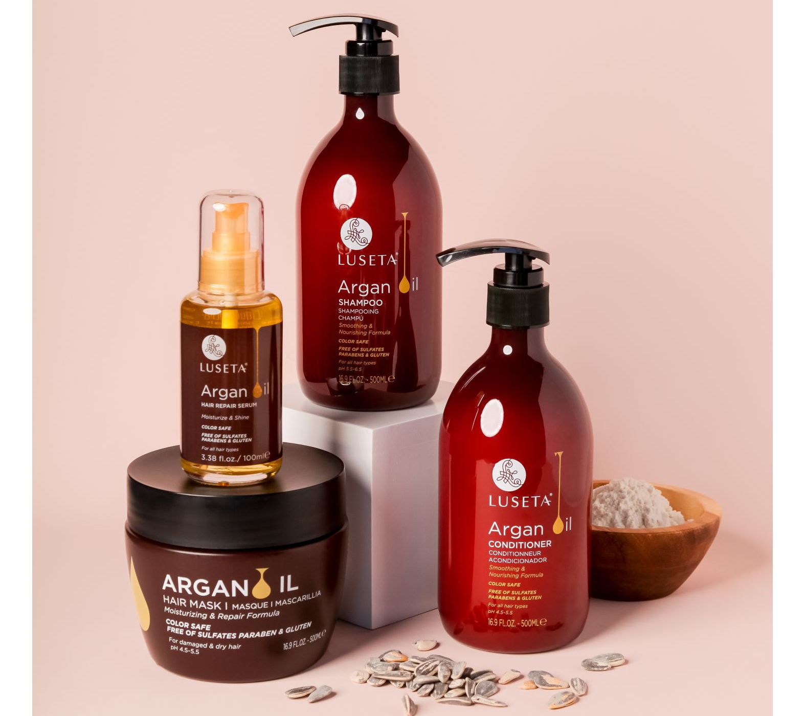 Formulated with argan oil, this Luseta Argan Oil collection includes shampoo, conditioner, serum, and hair mask.