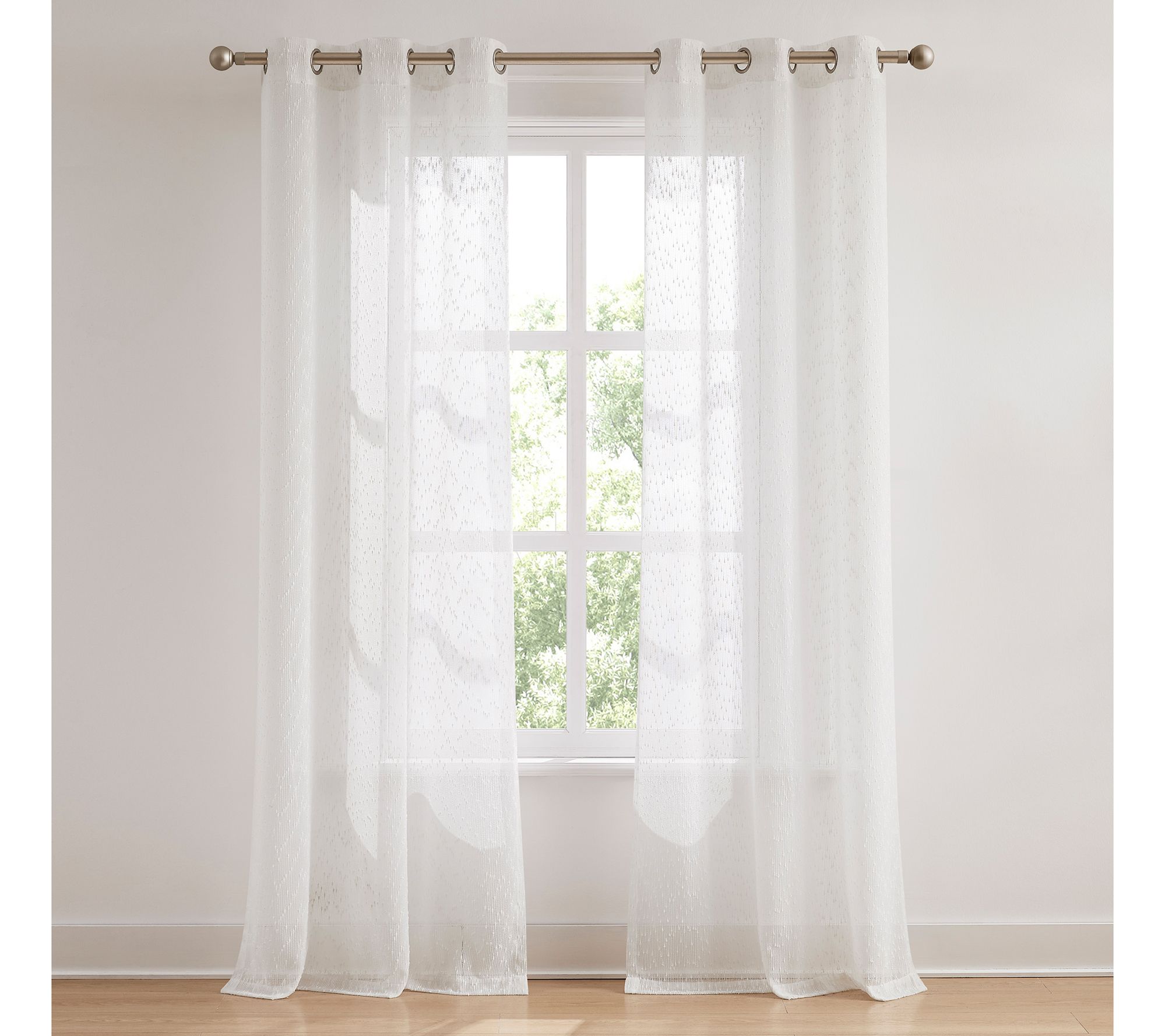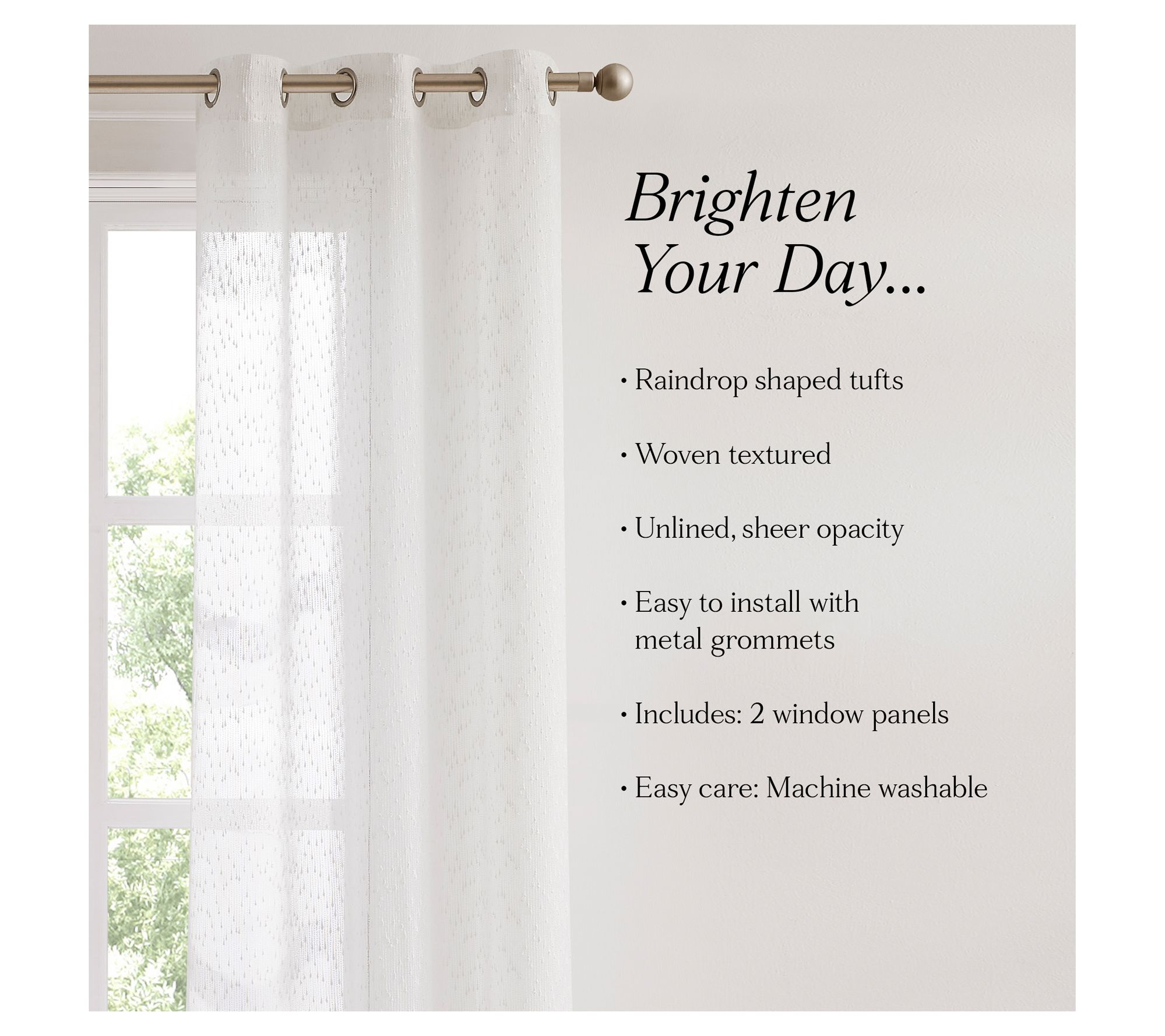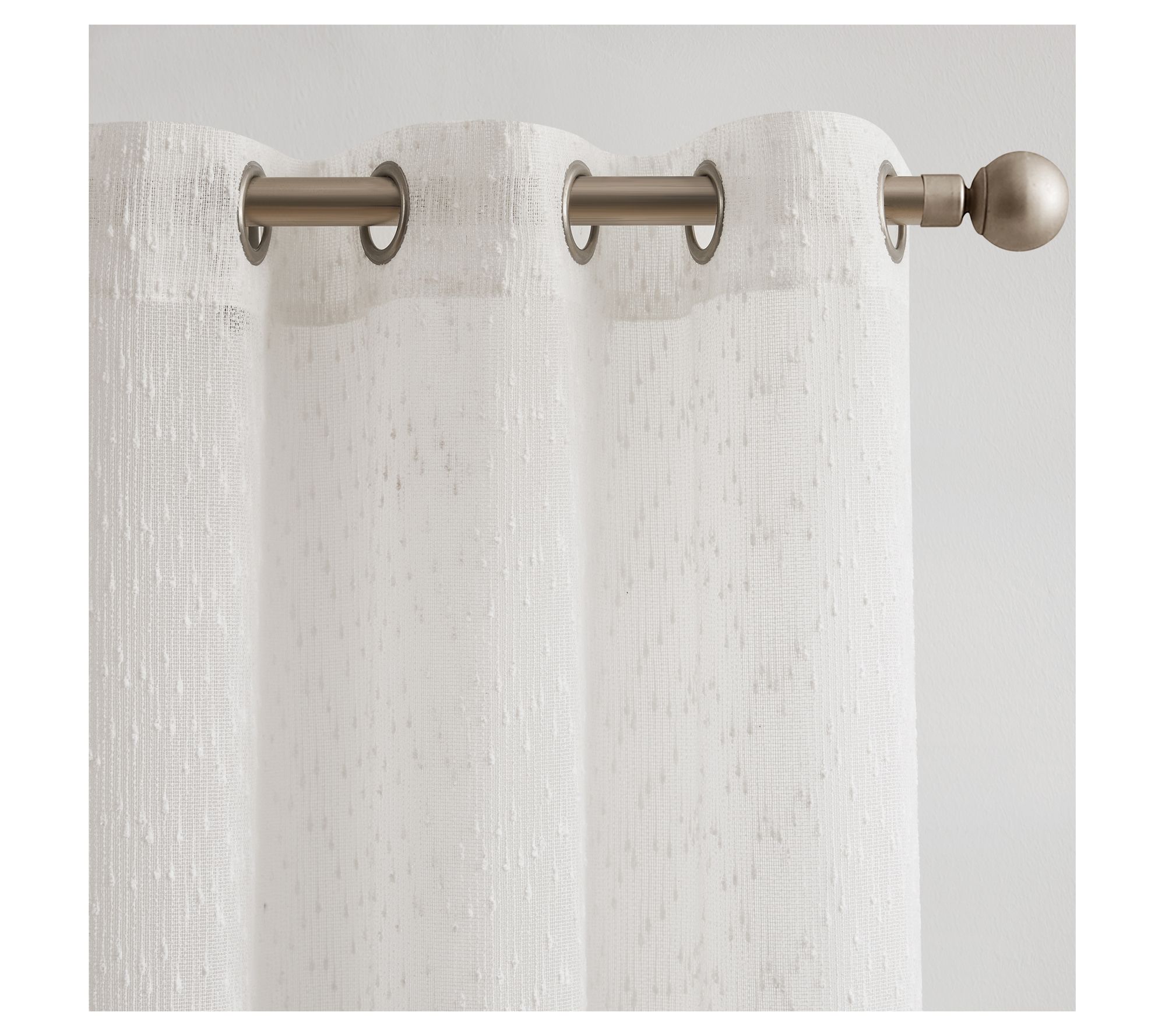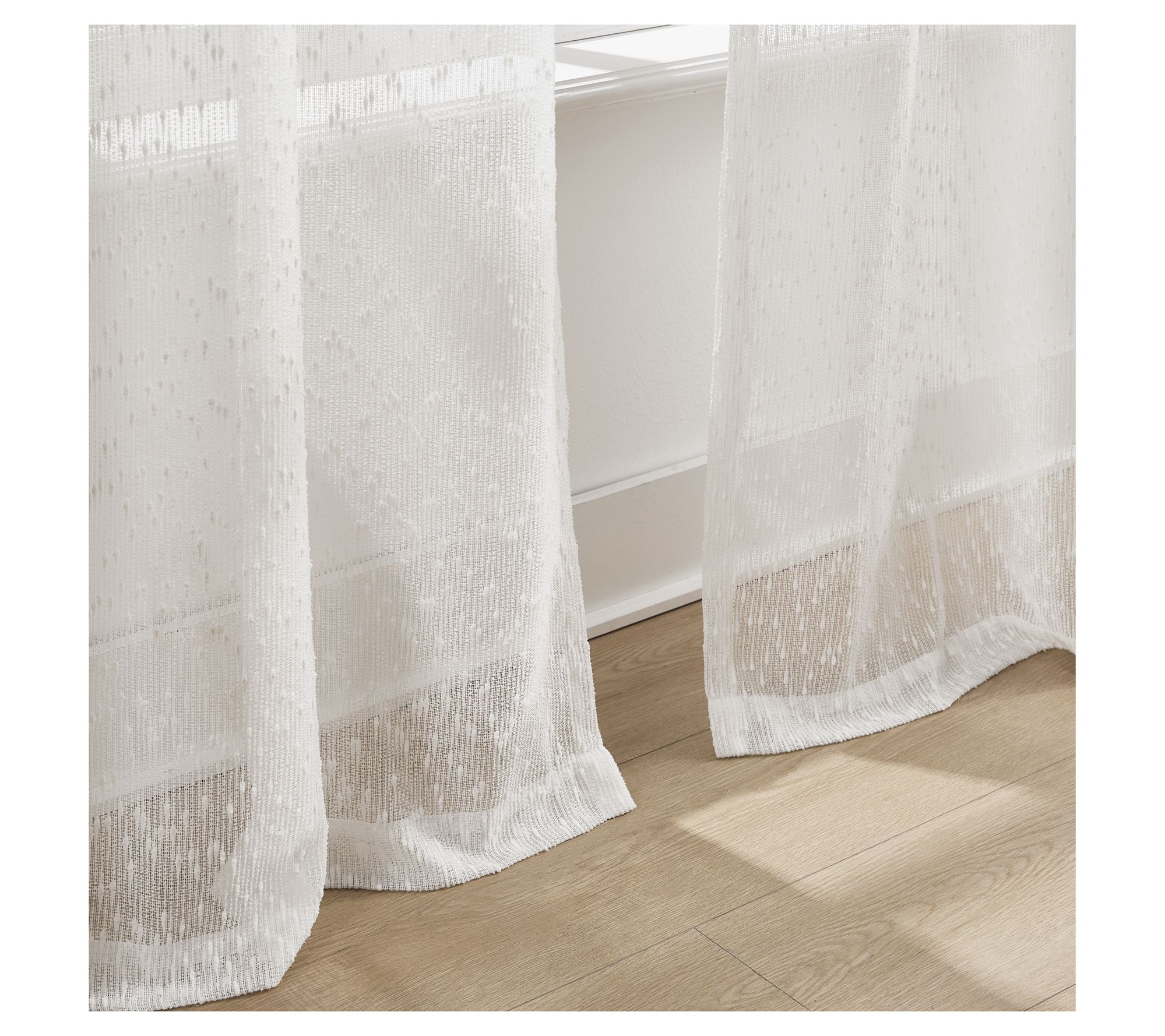 Create a calm and airy feel in your room as natural light streams through the woven raindrop tufts of these sheer window curtains. The softly textured fabric gently filters light while offering a bit of privacy, making any space feel brighter and more inviting. From Lush Decor.