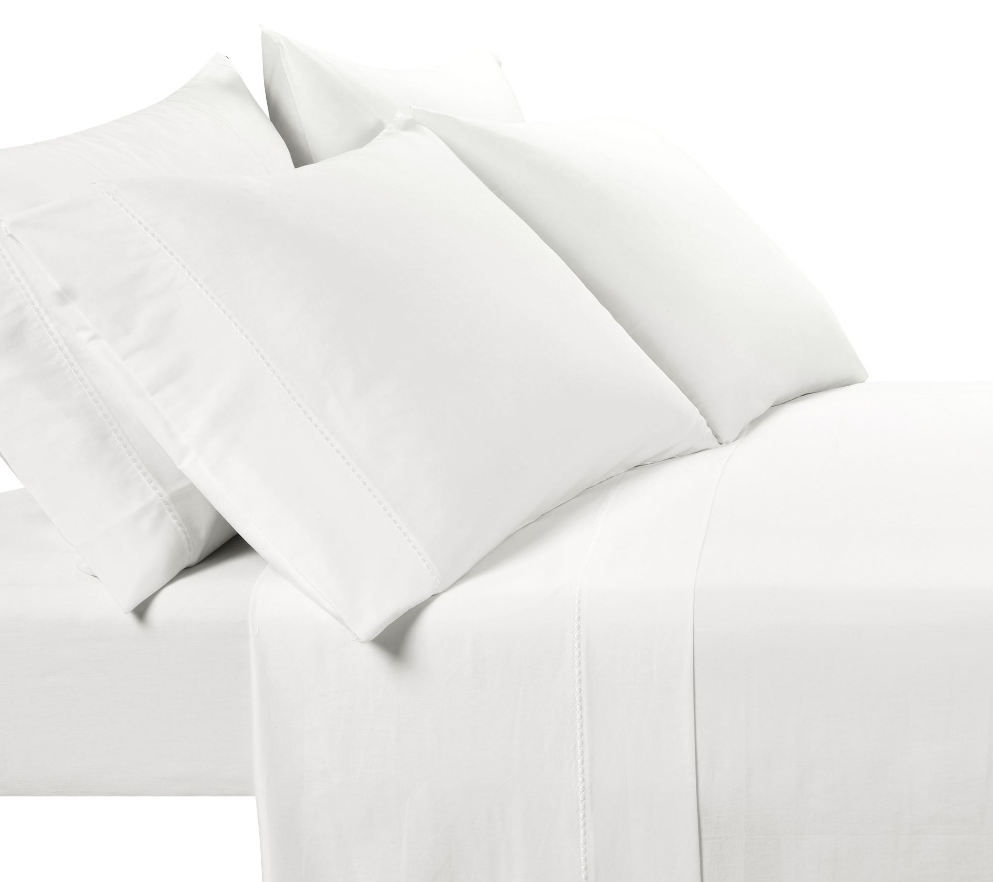 • Includes flat sheet, fitted sheet, and four pillowcases