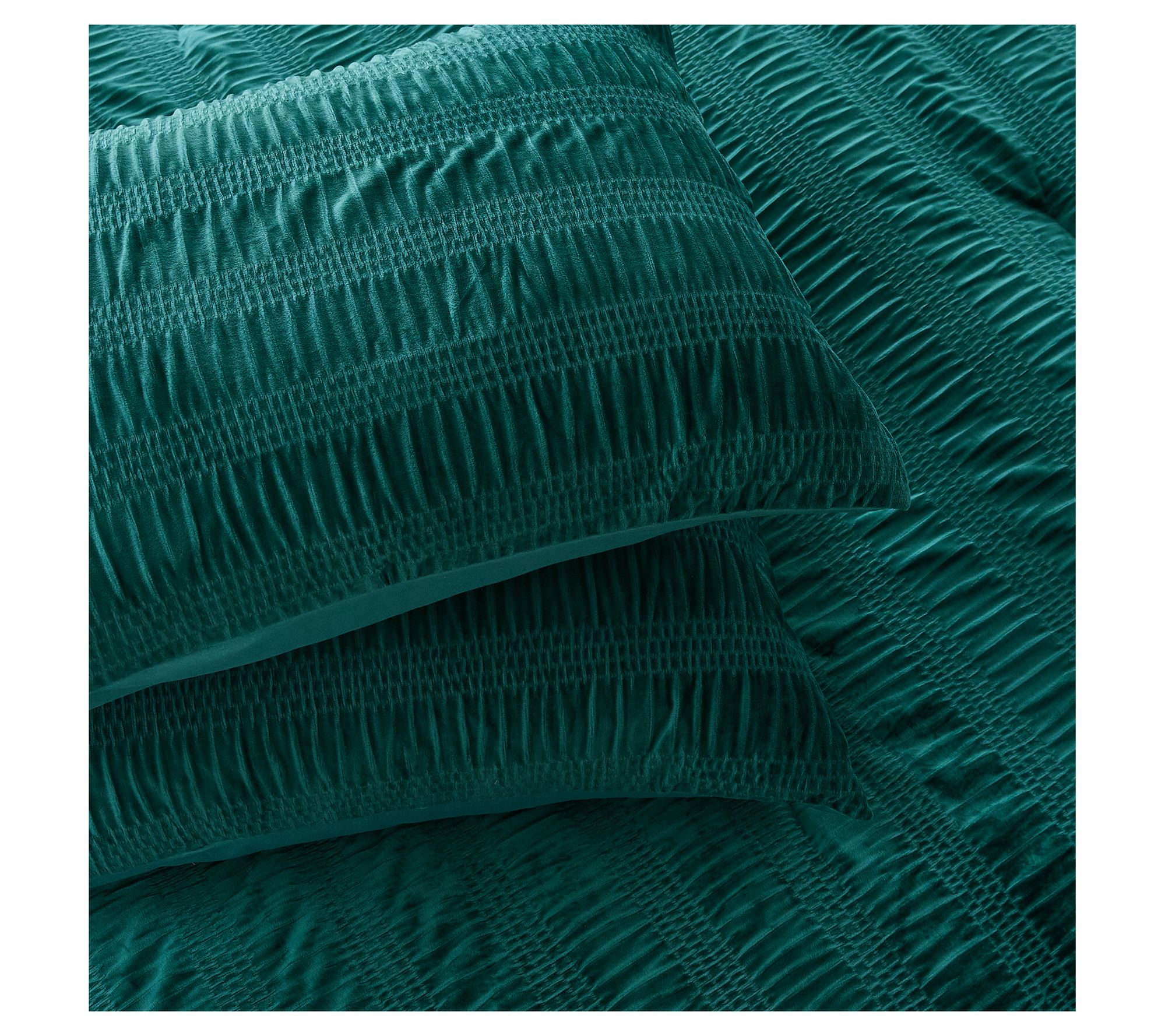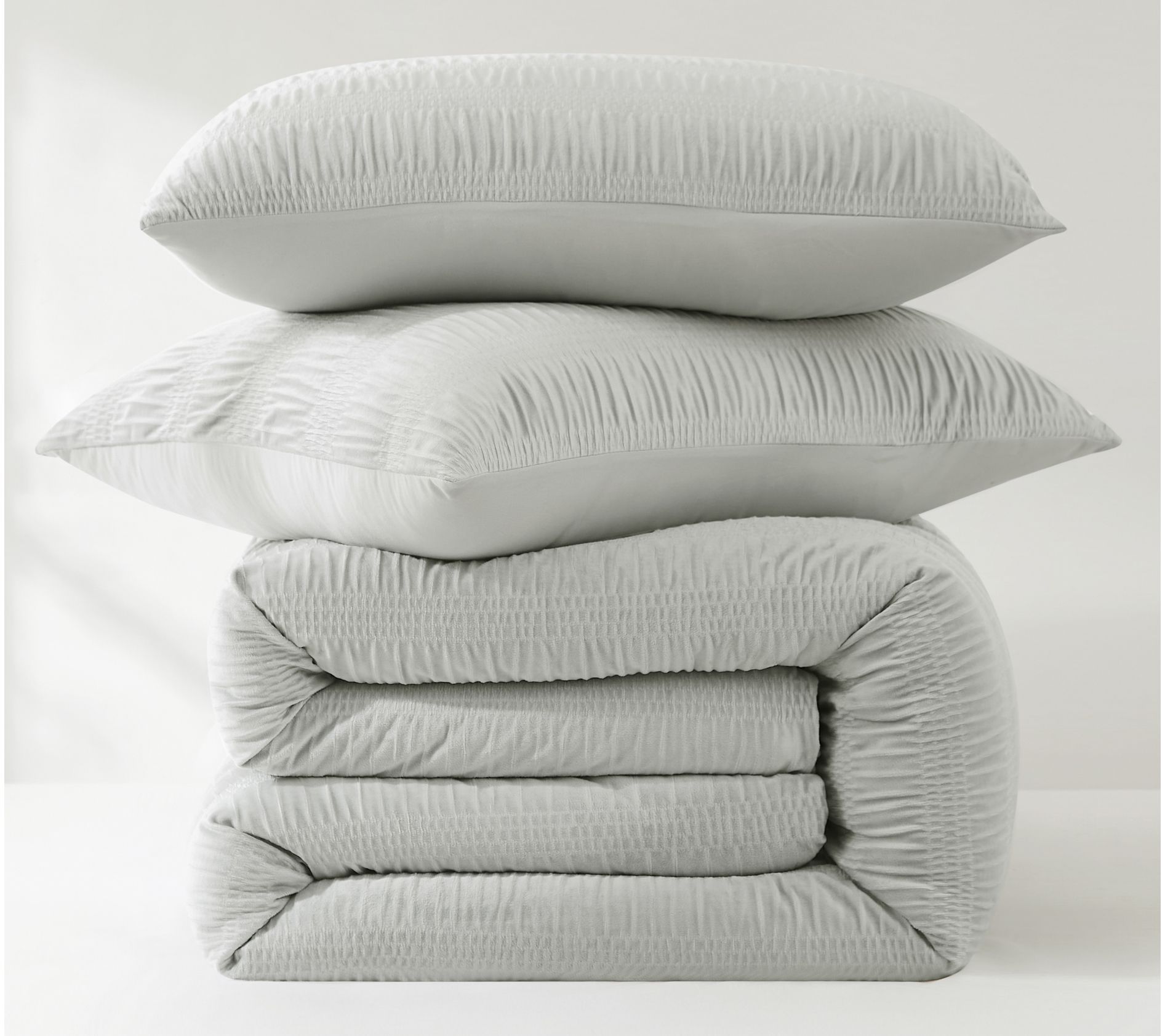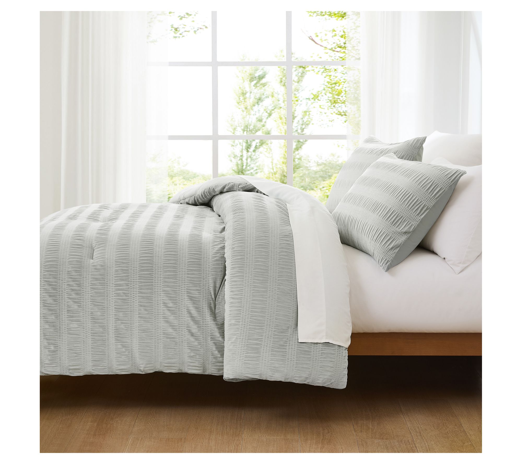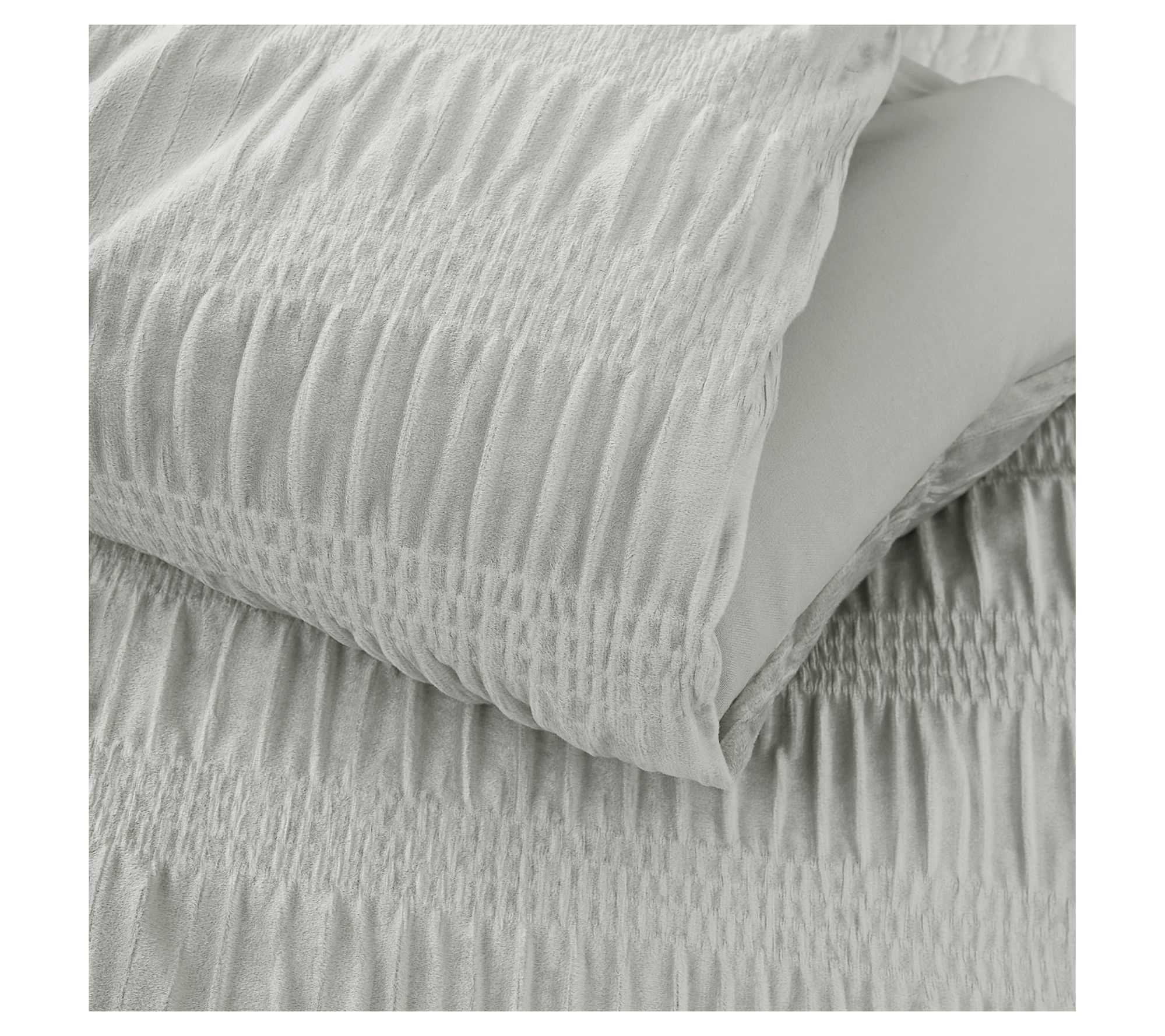 Soft velvet textures and modern ruched stripes turn your bedroom into a cozy retreat with this comforter set. Designed for year-round comfort, the medium-weight polyfill adds just the right amount of warmth, while the subtle shimmer of velvet brings a chic touch to any space. From Lush Decor.