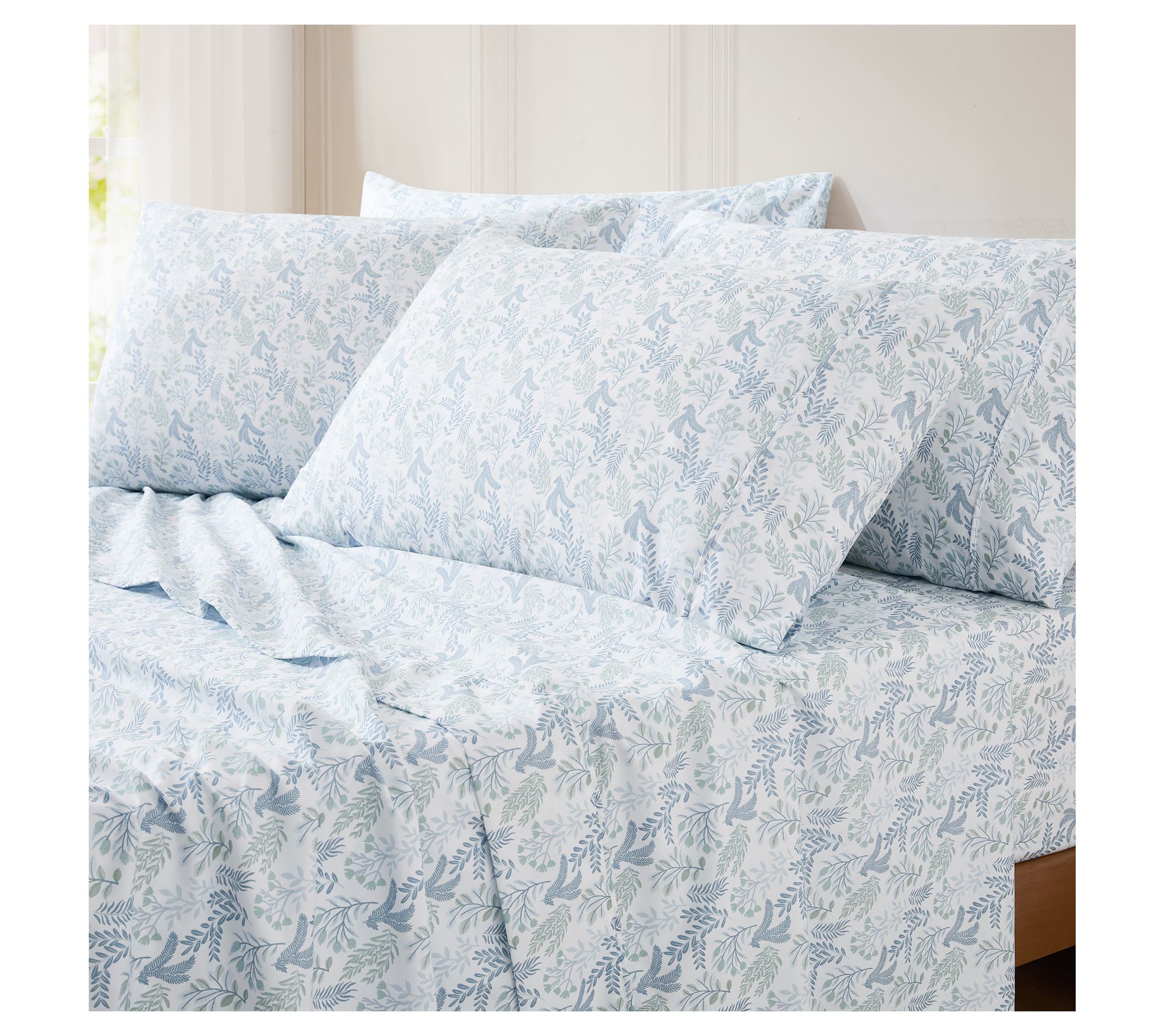 • Includes one flat sheet, one fitted sheet, and four pillowcases