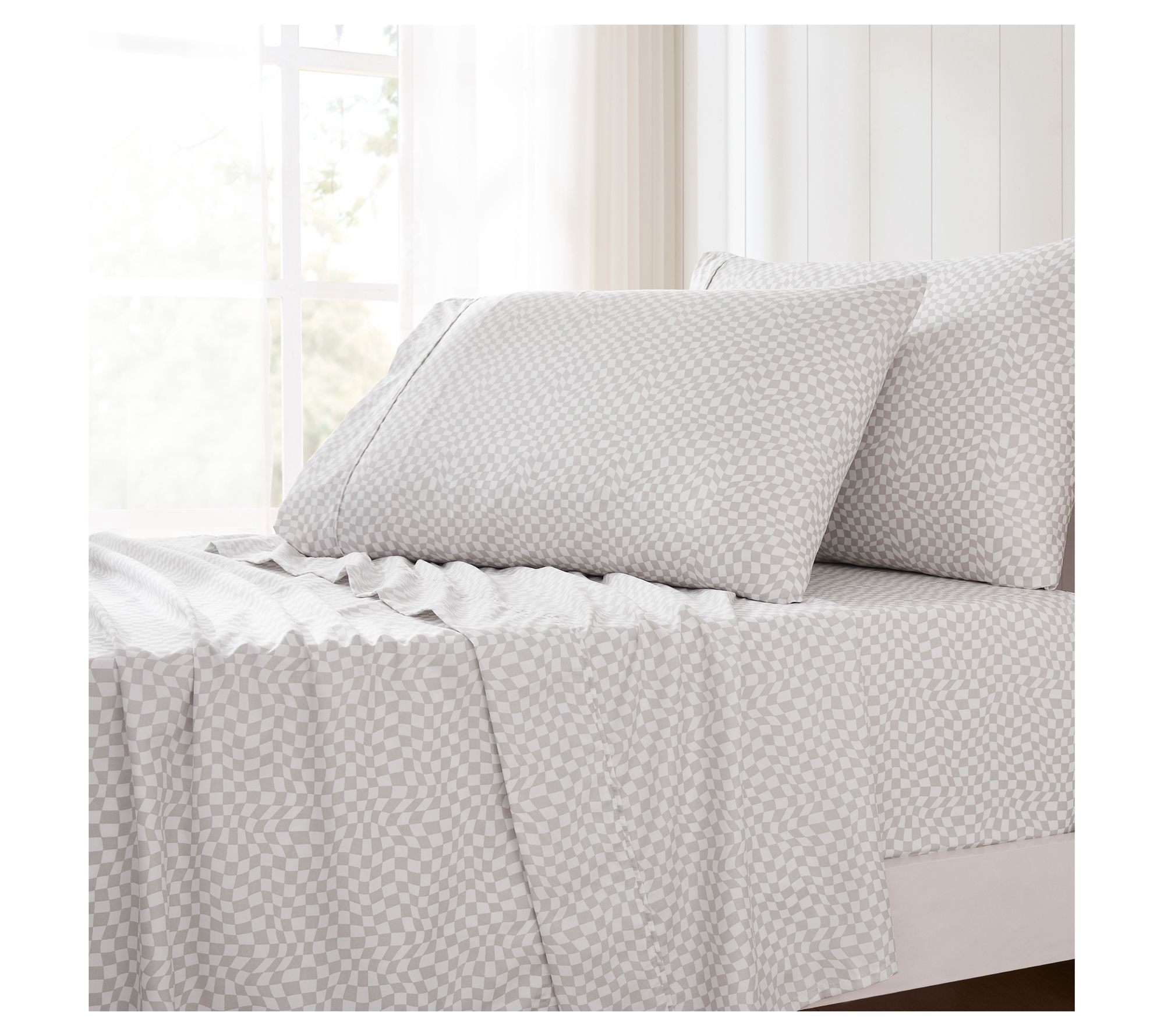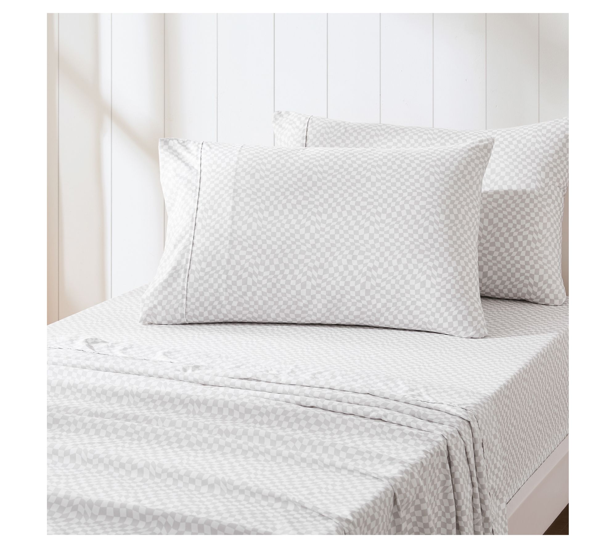 Brighten up bedtime with these wavy checkered sheets, where bold pattern and retro flair create a playful vibe for any bedroom. This four-piece sheet set adds a touch of fun while offering soft microfiber comfort for sweet dreams and easy mornings. From Lush Decor.